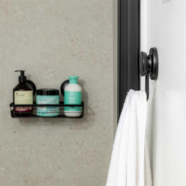Κρεμαστράκι με βεντούζα 2 θέσεων από την εταιρεία εstia σε μαύρο χρώμα. Είναι κατασκευασμένο από μεταλλικό υλικό. Είναι πολύ πρακτικά καθώς δεν χρειάζεται να τρυπήσετε την πόρτα και μπορείτε να τους αλλάζετε θέσεις ανάλογα με το που σας είναι απαραίτητα.
