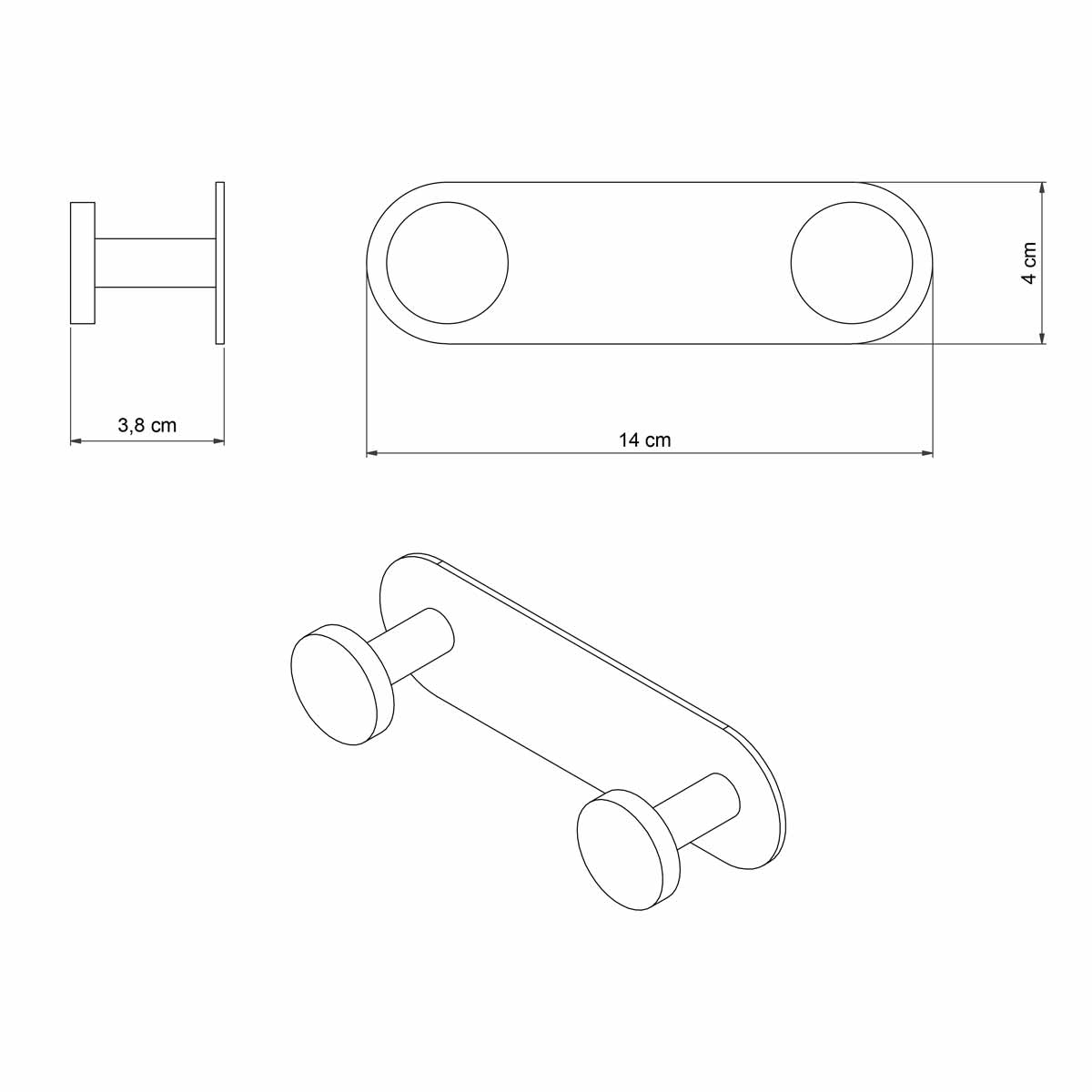 Μεταλλικό κρεμαστράκι δύο θέσεων με περιλαμβανόμενες βίδες τοποθέτησης. Είναι πολύ πρακτικό και μπορεί να τοποθετηθεί σε μπάνιο κουζίνα, υπνοδωμάτιο ή όπου αλλού σας είναι απαραίτητο.