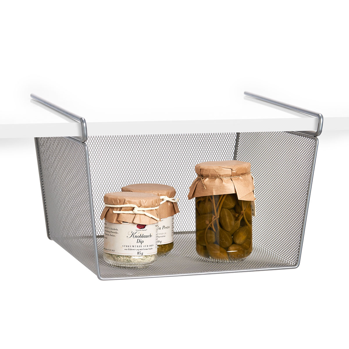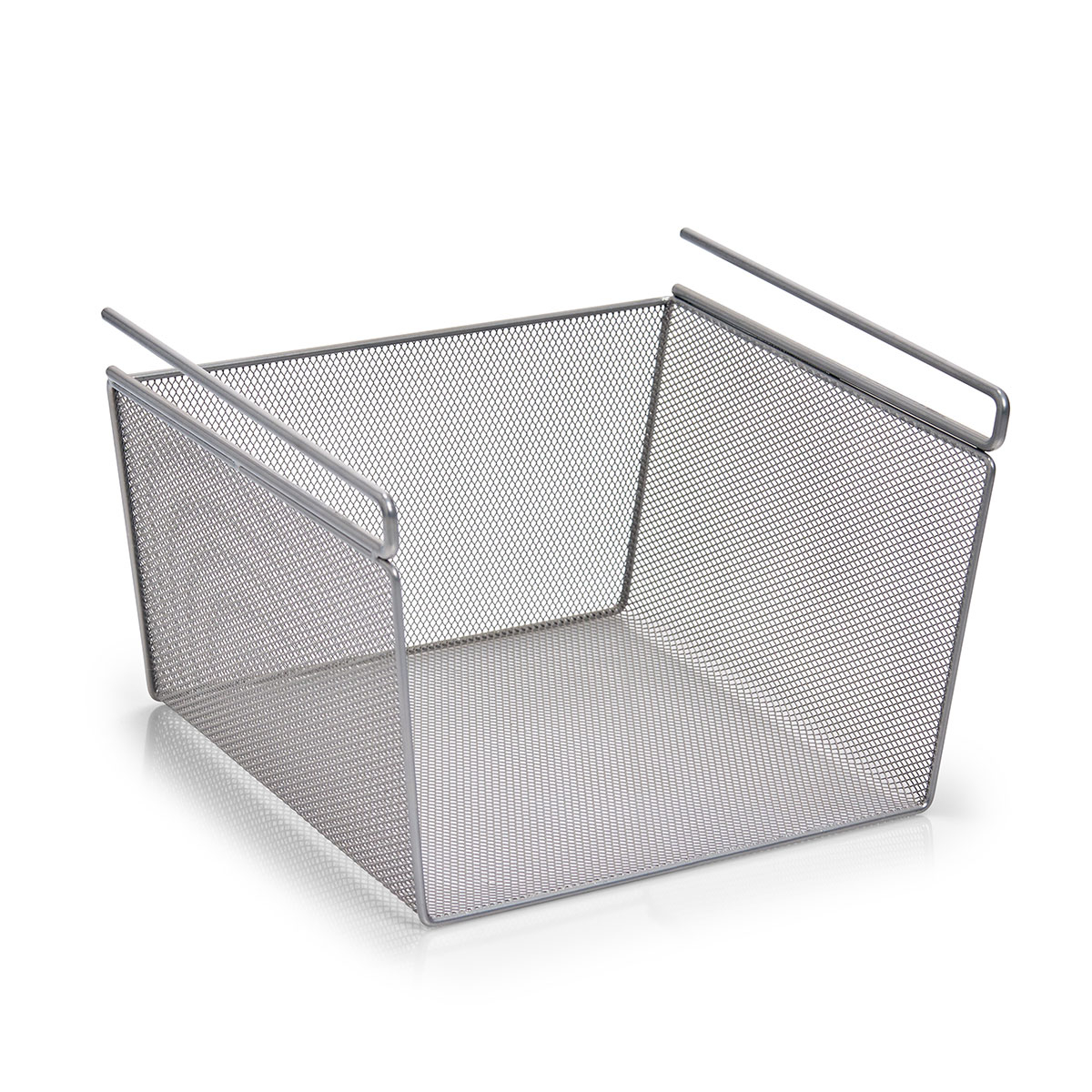 Κρεμαστό καλάθι αποθήκευσης για ράφι, ιδανικό για την καλύτερη οργάνωση ντουλαπιών, ραφιών ή ντουλαπών. Τοποθετείται εύκολα κάτω από ράφι ή ντουλάπι, δημιουργώντας επιπλέον αποθηκευτικό χώρο για πετσέτες, ρούχα ή άλλα αντικείμενα. Είναι κατασκευασμένο από μεταλλικό σύρμα σε ασημί χρώμα με ηλεκτροστατική βαφή για μεγαλύτερη αντοχή. Κατάλληλο για ράφια με μέγιστο πάχος έως 18mm. Μια πρακτική λύση για καλύτερη αξιοποίηση του διαθέσιμου χώρου.