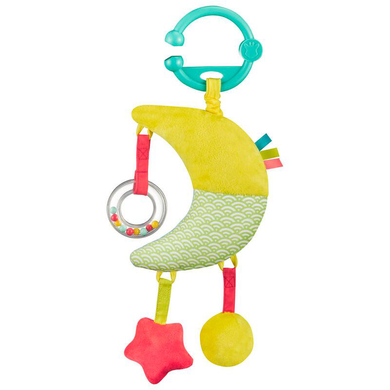 Μουσικό φεγγαράκι δραστηριοτήτων από την Σόφι την καμηλοπάρδαλη. Τα έντονα χρώματά του και οι διαφορετικές υφές, εξιτάρουν την περιέργεια του μωρού και ενισχύουν την νοητική του ανάπτυξη. Ο κρίκος σας επιτρέπει να το κρεμάσετε την κούνια, το παρκοκρέβατο, το καρότσι ή όπου αλλού επιθυμείτε. Τραβώντας το, παίζει μουσική που ηρεμεί το μωρό. Διαθέτει ετικέτες με διάφορα χρώματα, 1 κουδουνίστρα, 1 λούτρινη μπαλίτσα και 1 λούτρινο αστεράκι που παράγουν ήχους. Ιδανικό για αγοράκια και κοριτσάκια. Κατάλληλο από την πρώτη μέρα της γέννησης.