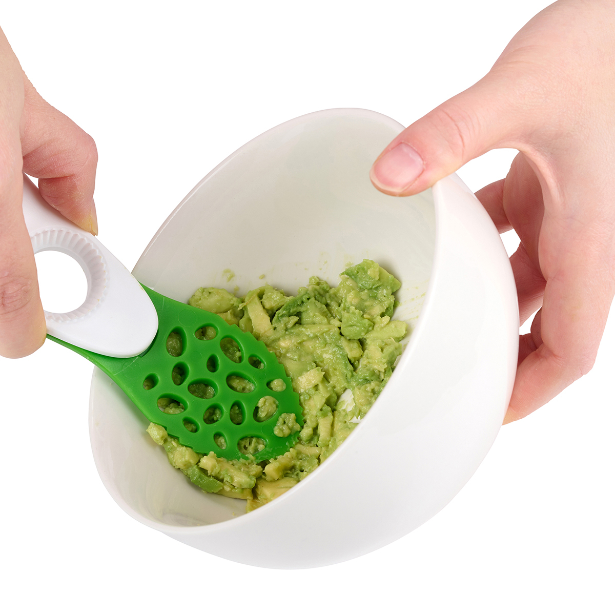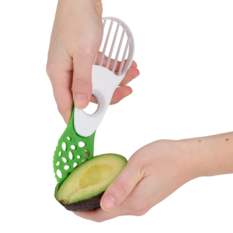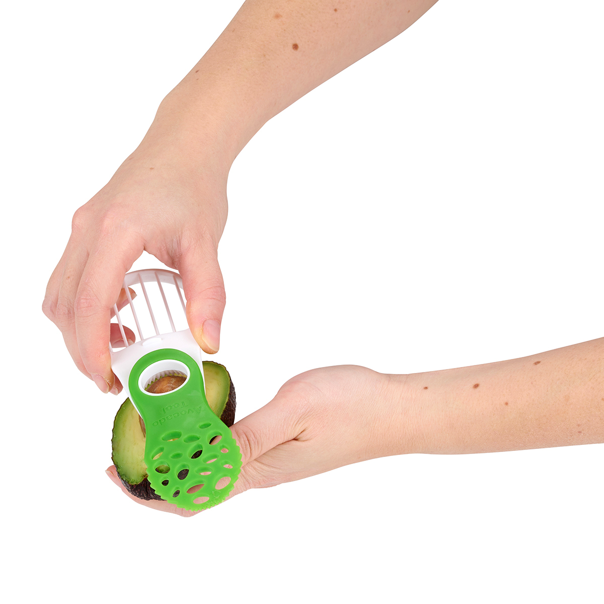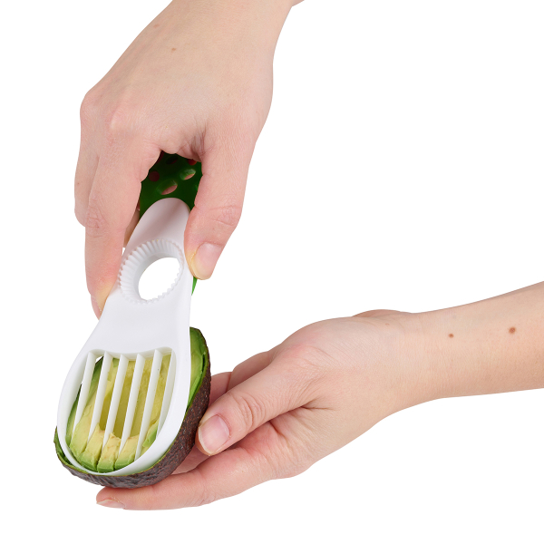 Κόφτης για αβοκάντο από την εταιρεία Alpina. Είναι κατασκευασμένος από πλαστικό υλικό σε πράσινο και λευκό χρώμα. Με αυτό το πολυεργαλείο μπορείτε να κόψετε, να αφαιρέσετε το κουκούτσι, να καθαρίσετε και να τεμαχίσετε το αβοκάντο. Ιδανικό εργαλείο για κάθε κουζίνα.