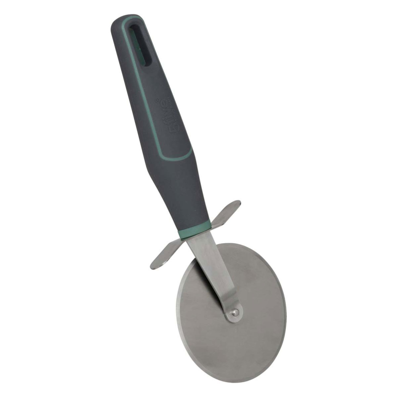 Κόφτης πίτσας σε γκρι χρώμα με πράσινες λεπτομέρειες. Είναι κατασκευασμένος από υψηλής ποιότητας πλαστικό υλικό, κατάλληλο για επαφή με τα τρόφιμα, και ανοξείδωτο ατσάλι. Διαθέτει τρύπα για να κρεμιέται. Συνδυάστε τον με τα υπόλοιπα εργαλεία κουζίνας της ίδιας συλλογής.