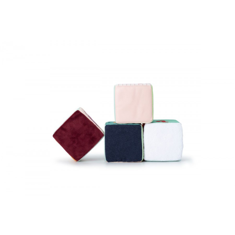Παιχνίδι στοίβαξης πολύχρωμο από την εταιρεία Lilliputiens. Είναι κατασκευασμένο από ύφασμα. Δημιουργήστε μία φάρμα ή ανακαλύψτε τα ζώα της φάρμας, τους αριθμούς και τα διάφορα υλικά και χρώματα. Το παιχνίδι αυτό είναι μια πρόκληση για τα παιδιά καθώς πρέπει να σταθούν όρθια για να βάλουν τον ένα κύβο πάνω στον άλλον για να φτιάξουν ένα ψηλό πύργο ή να βάλουν όλους τους κύβους μέσα στο κουτί με την σωστή σειρά.