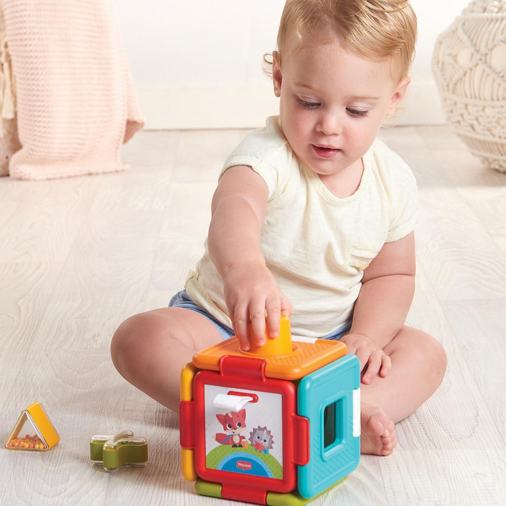 Κύβος δραστηριοτήτων σε πολύχρωμες αποχρώσεις από την εταιρία Tiny Love. Είναι κατασκευασμένος από πλαστικό υλικό και διαθέτει διάφορες δραστηριότητες που θα κρατήσουν το ενδιαφέρον του μωρού σας αμείωτο. Αυτός ο κύβος, ενθαρρύνει την γνώση, την συναισθηματική νοημοσύνη, αναπτύσσει τις λεπτές κινητικές δεξιότητες, την φαντασία και την δημιουργικότητα καθώς έχει συναρπαστικές λειτουργίες. Ο κύβος ανοίγει σε παζλ έτσι ώστε το μικρό σας να μπορέσει να τοποθετήσει σωστά τα σχήματα. Ο περιστρεφόμενος κύκλος peek-a-boo θα ενθαρρύνει την περαιτέρω εξερεύνηση ενώ ο καθρέπτης θα προσφέρει πολλές ώρες διασκέδασης. Κατάλληλο για ηλικίες 6+ μηνών.