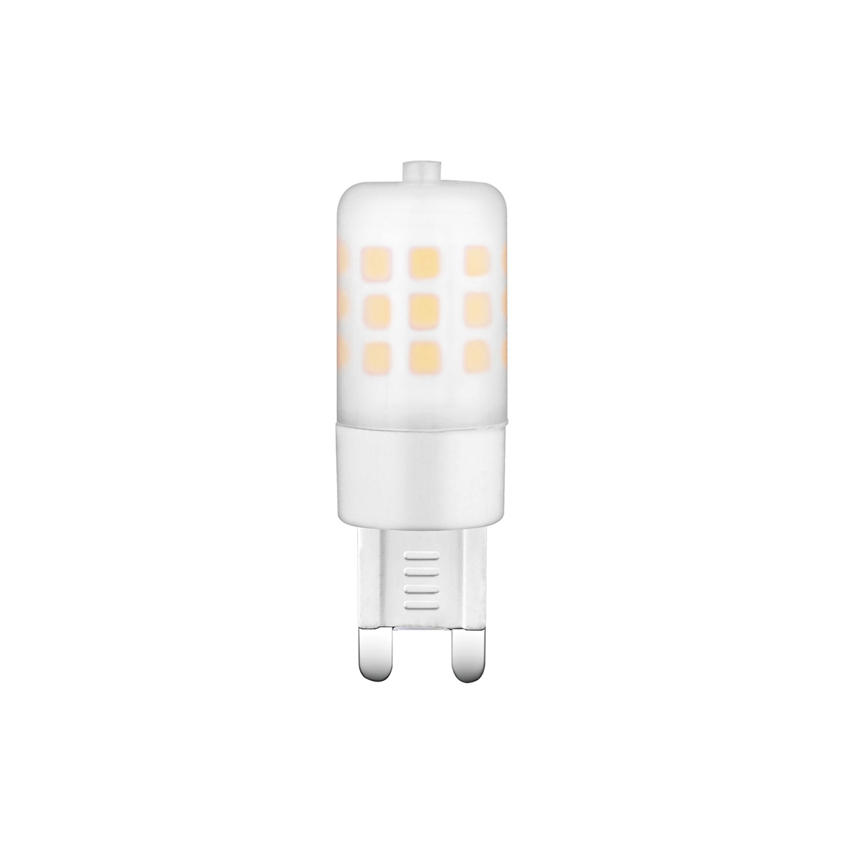Λάμπα Dimmable SMD - νήματος LED της εταιρείας Eurolamp. Η λάμπα λειτουργεί ως απλή με τους συμβατικούς-απλούς διακόπτες. Υπάρχει επιπλέον η δυνατότητα να λειτουργήσει ως ντιμαριζόμενη (dimmable). Χαρακτηριστικά λαμπτήρα: Ισχύς εισόδου: 220-240V - Τύπος ντουί: G9 - Ισχύς: 4 Watt - Θερμοκρασία χρώματος: 6500K/Ψυχρό Λευκό - Φωτεινότητα: 400Lm - Δέσμη φωτισμού: 360 μοίρες - Διάρκεια ζωής: 25.000 ώρες. Εγγύηση ορθής χρήσης 2 χρόνια.