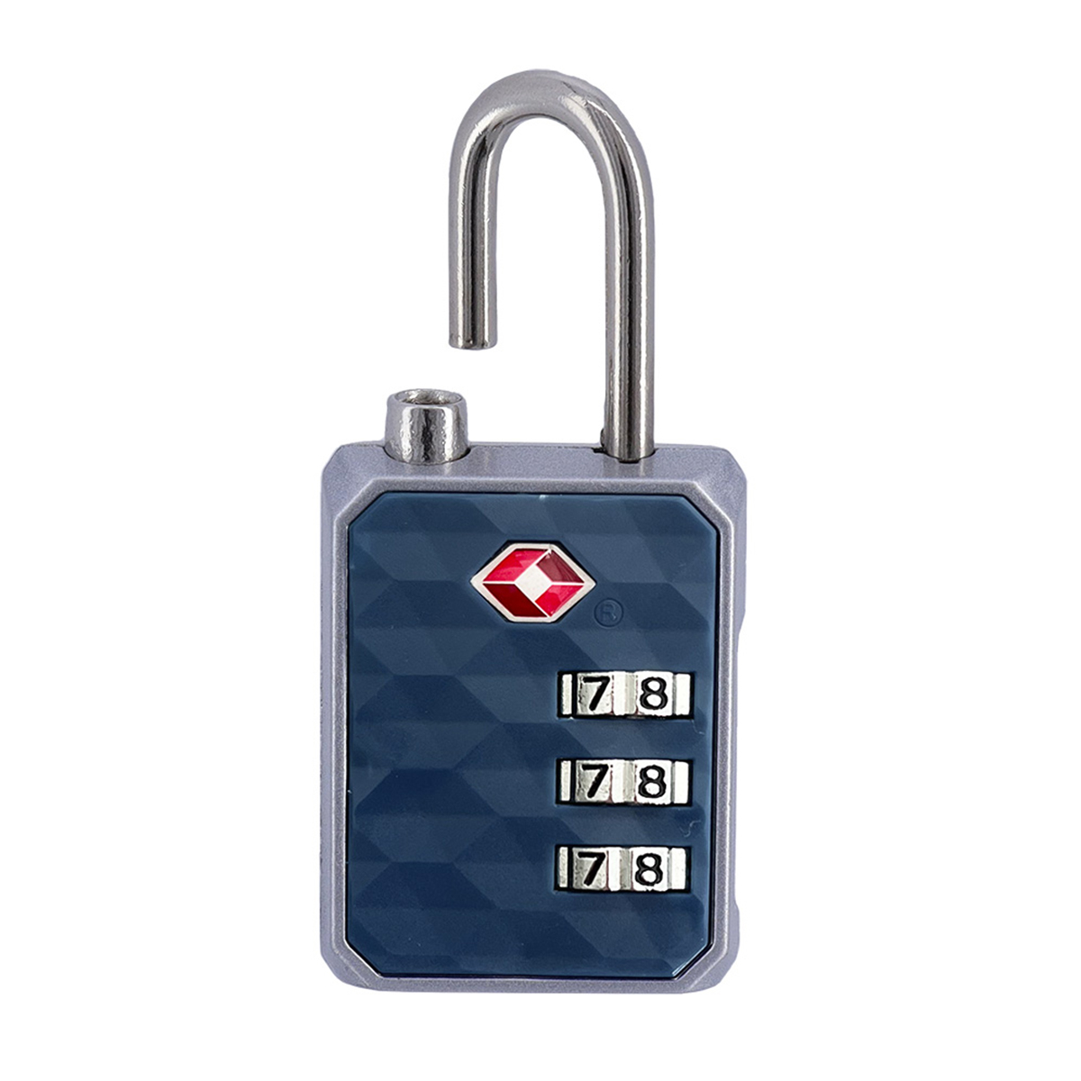 Λουκέτο με συνδυασμό χωρίς κλειδί, κατασκευασμένο από μεταλλικό υλικό σε μπλε χρώμα. Διαθέτει ρυθμιζόμενο 4 ψήφιο κωδικό και οι οδηγίες για την τοποθέτηση του κωδικού βρίσκονται στη συσκευασία του προϊόντος. Με κλειδαριά πιστοποιημένη από τον TSA που επιτρέπει το άνοιγμα με ειδικό κλειδί κατά τη διάρκεια τελωνειακού ελέγχου. Ασφαλίστε τις αποσκευές σας με αυτή τη κλειδαριά βαλίτσας με κωδικό για μέγιστη ασφάλεια στα ταξίδια σας. Μπορεί να χρησιμοποιηθεί για lockers, ποδήλατα ή όπου αλλού θέλετε.
