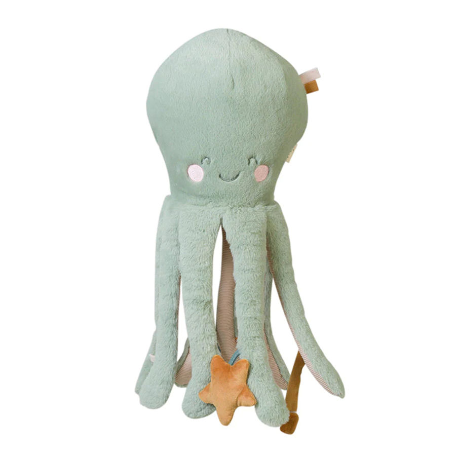 Μαλακό παιχνίδι δραστηριοτήτων σε βεραμάν χρώμα και σχέδιο χταπόδι από την εταιρεία Saro. Είναι κατασκευασμένο από 100% polyester που το καθιστά ιδιαίτερα μαλακό και απαλό. Στα πλοκάμια του διαθέτει μία κουδουνίστρα, που θα βοηθήσει το μωρό σας να αναπτύξει την αίσθηση του ρυθμού ενώ διασκεδάζει δημιουργώντας ήχους. Ιδανικό παιχνίδι για να βοηθήσει το παιδί σας να αναπτύξει τις κινητές του ικανότητες, να διεγείρει τις αισθήσεις του και να διασκεδάσει με διάφορους τρόπους. Ιδανικό για ηλικίες 0+ μηνών. Το προϊόν είναι κατασκευασμένο σύμφωνα με τα πρότυπα EN 71.