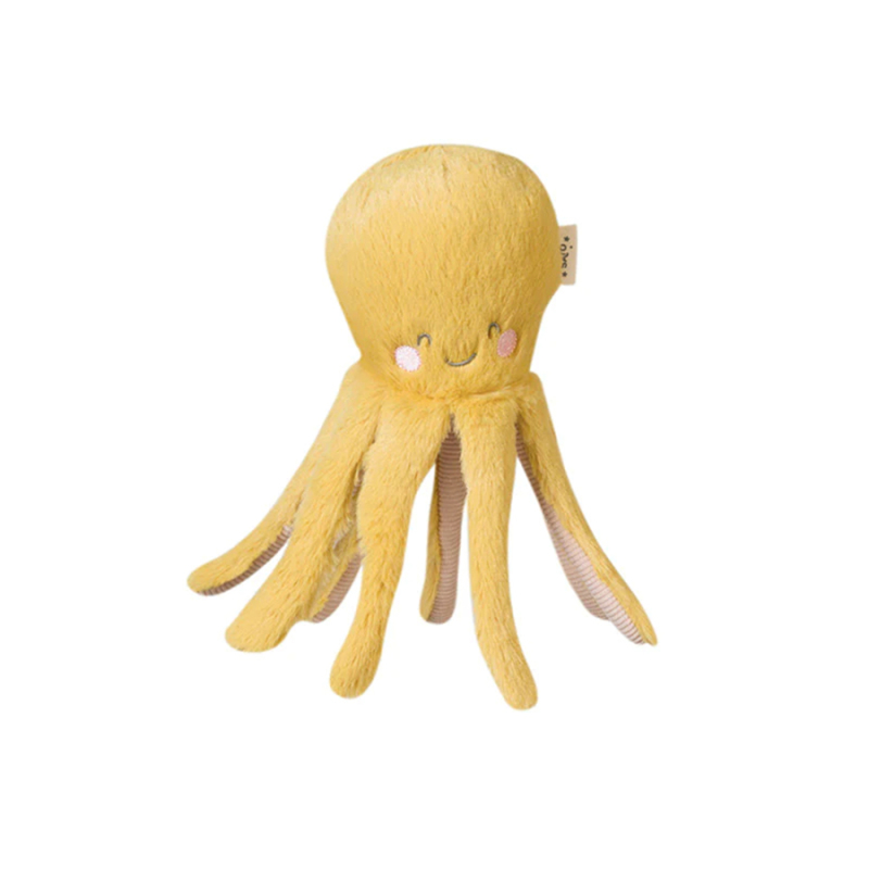 Μαλακό παιχνίδι δραστηριοτήτων στο χρώμα της ώχρας και σχέδιο χταπόδι από την εταιρεία Saro. Είναι κατασκευασμένο από 100% polyester που το καθιστά ιδιαίτερα μαλακό και απαλό. Στα πλοκάμια του διαθέτει μία κουδουνίστρα, που θα βοηθήσει το μωρό σας να αναπτύξει την αίσθηση του ρυθμού ενώ διασκεδάζει δημιουργώντας ήχους. Ιδανικό παιχνίδι για να βοηθήσει το παιδί σας να αναπτύξει τις κινητές του ικανότητες, να διεγείρει τις αισθήσεις του και να διασκεδάσει με διάφορους τρόπους. Ιδανικό για ηλικίες 0+ μηνών. Το προϊόν είναι κατασκευασμένο σύμφωνα με τα πρότυπα EN 71.
