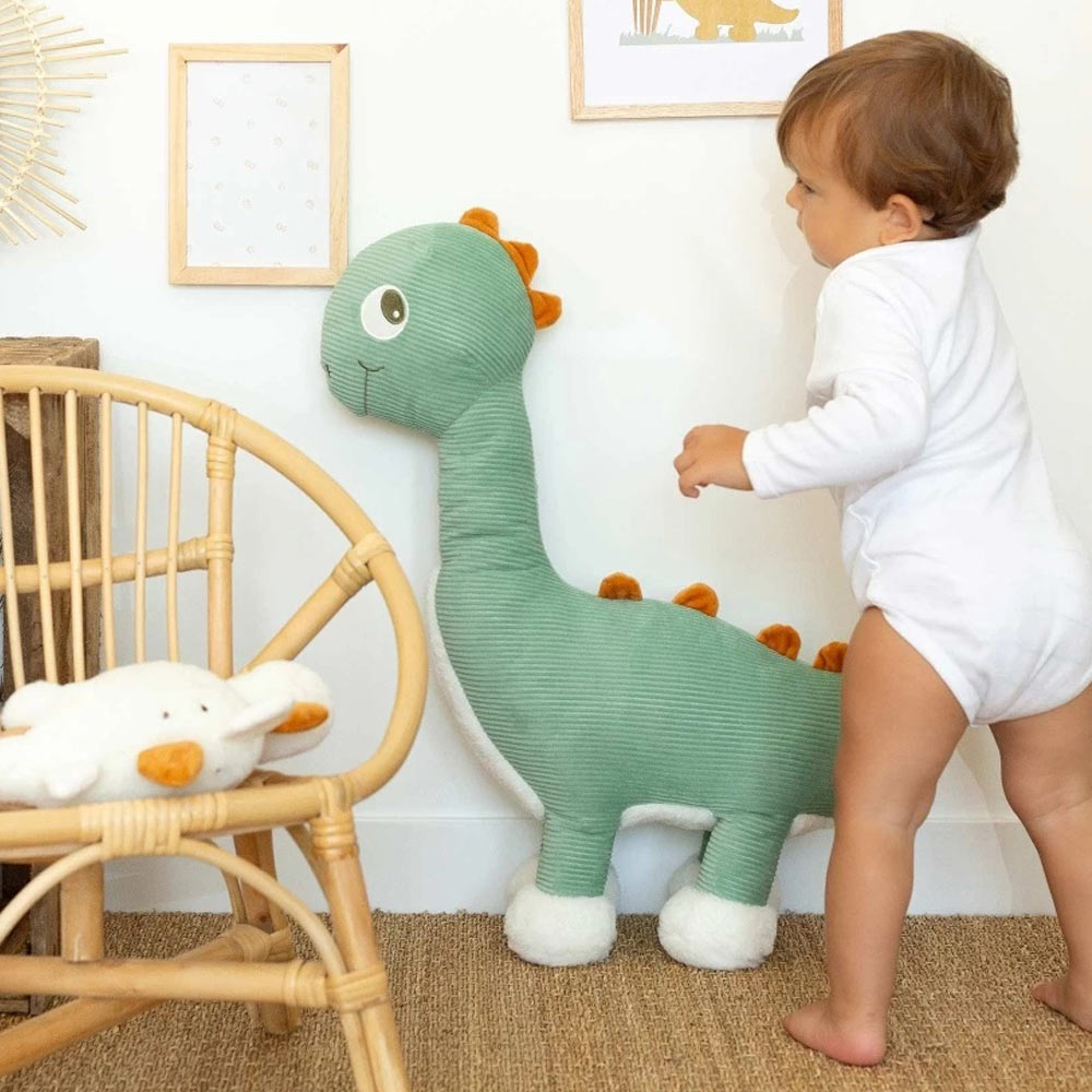 Λούτρινο ζωάκι με σχήμα δεινόσαυρου σε πράσινο χρώμα με μπεζ-λευκές λεπτομέρειες της εταιρείας Trois Kilos Sept. Είναι κατασκευασμένο από 100% polyester με υφές και χρώματα που θα τραβήξουν την προσοχή του μωρού σας. Ιδανικό για να διακοσμήσει το παιδικό δωμάτιο και να συντροφεύσει το μικρό σας σε κάθε ανακάλυψη. Κατάλληλο από την γέννηση.