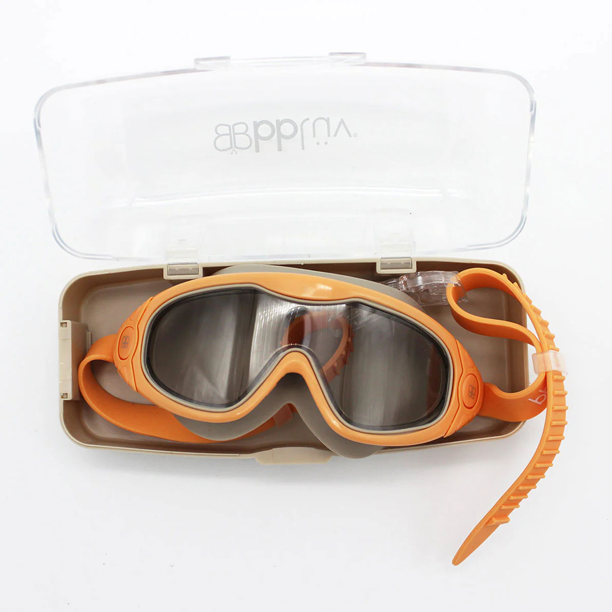 Παιδική μάσκα θαλάσσης σε πορτοκαλί χρώμα από την εταιρεία Bbluv. Είναι κατασκευασμένη από σιλικόνη-πλαστικό με αεροστεγή, αδιάβροχο σχεδιασμό, φιμέ αντιηλικακούς (UV) φακούς και αντιθαμβωτική επίστρωση, προσφέρει απόλυτη άνεση και ασφάλεια κάτω από το νερό. Διαθέτει ρυθμιζόμενο λουράκι εξασφαλίζοντας τέλεια εφαρμογή, ενώ το πρακτικό κουτί αποθήκευσης διευκολύνει τη μεταφορά. Ιδανική επιλογή για υποβρύχιες εξερευνήσεις. Δεν διαθέτει αναπνευστήρα. Κατάλληλο για 3+ ετών.
