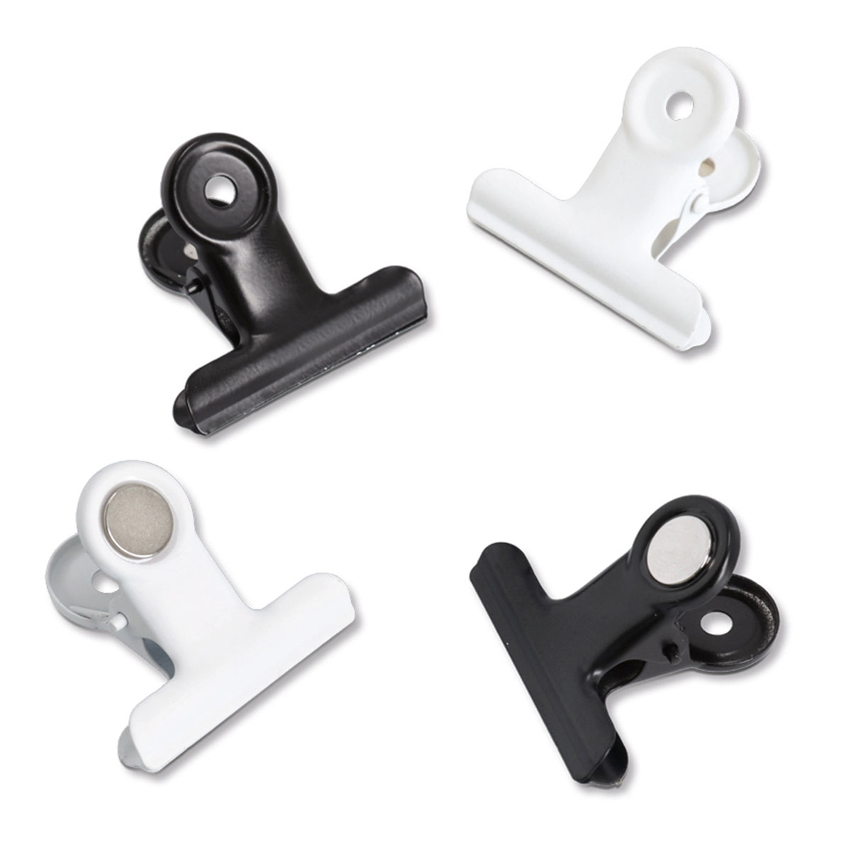 Μαγνητάκια σε σετ 4 τεμαχίων. Είναι κατασκευασμένα από μεταλλικό υλικό σε ασημί χρώμα. Ιδανικά για να συγκρατούν σημειώσεις, φωτογραφίες, λογαριασμούς ή υπενθυμίσεις σε ψυγείο και άλλες μεταλλικές επιφάνειες. Διαθέτουν πρακτικό κλιπ για εύκολη τοποθέτηση εγγράφων. Κατάλληλα για το σπίτι ή το γραφείο.