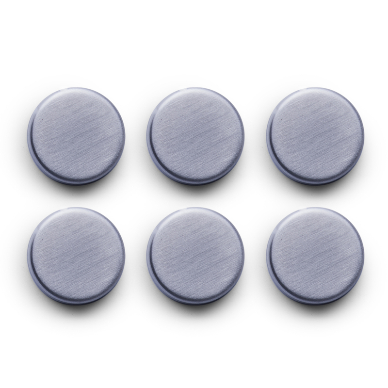 Μαγνητάκια σε σετ 6 τεμαχίων, κατασκευασμένα από ανοξείδωτο ατσάλι σε ασημί χρώμα. Mπορείτε να στερεώσετε εύκολα τα ραντεβού, τις λίστες αγορών, τις φωτογραφίες, τις καρτ ποστάλ και ό,τι άλλο θέλετε σε όλες τις μαγνητικές επιφάνειες ανά πάσα στιγμή, όπως σε πίνακες μαρκαδόρου ή ψυγεία.