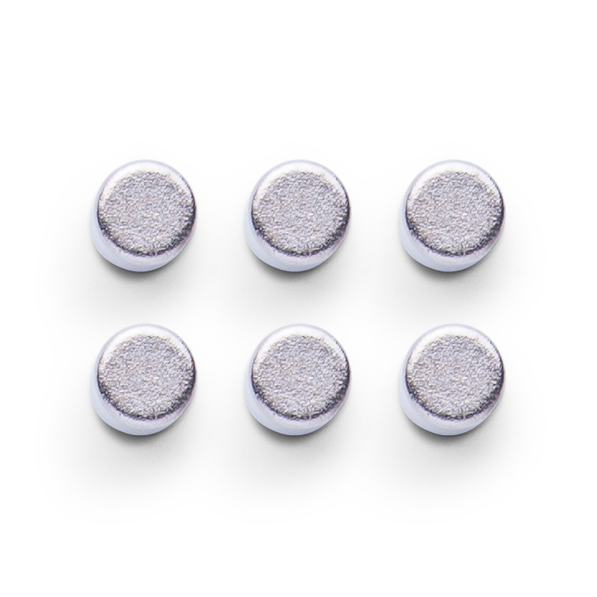 Μαγνητάκια σε σετ 6 τεμαχίων, κατασκευασμένα από ανοξείδωτο ατσάλι σε ασημί χρώμα. Mπορείτε να στερεώσετε εύκολα τα ραντεβού, τις λίστες αγορών, τις φωτογραφίες, τις καρτ ποστάλ και ό,τι άλλο θέλετε σε όλες τις μαγνητικές επιφάνειες ανά πάσα στιγμή, όπως σε πίνακες μαρκαδόρου ή ψυγεία.