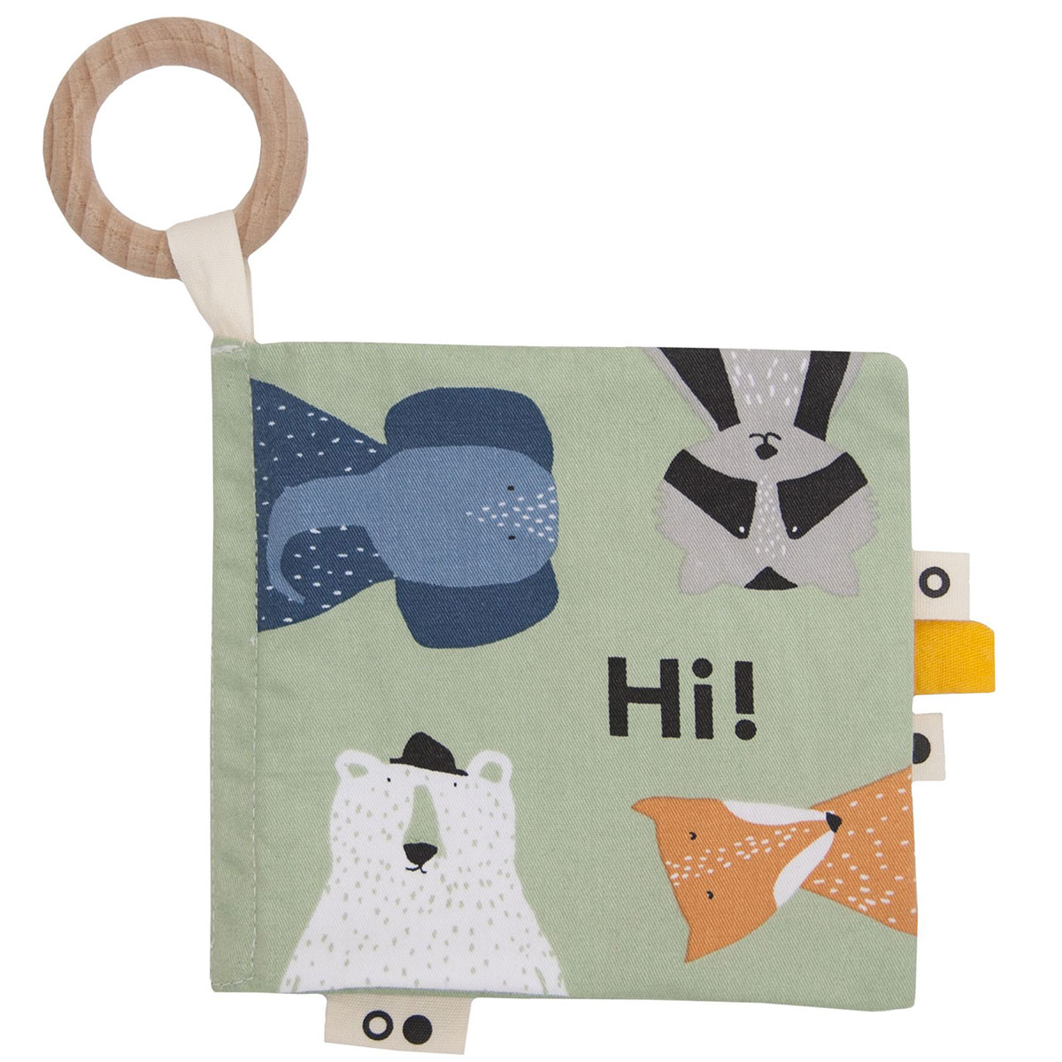 Μαλακό βιβλίο δραστηριότητας σε βεραμάν χρώμα με πολύχρωμες λεπτομέρειες και σχέδιο ζωάκια από την εταιρεία Trixie. Κατασκευασμένο από μαλακά υφάσματα, διαθέτει έναν ξύλινο κρίκο στην άκρη για να το παίρνετε μαζί σας οπουδήποτε αλλά και να το κρεμάτε. Ανακαλύψτε μαζί με το παιδί σας τις περιπέτειες των ηρώων του βιβλίου και διδάξτε στο παιδί σας τα χρώματα και τα ονόματα των ζώων.