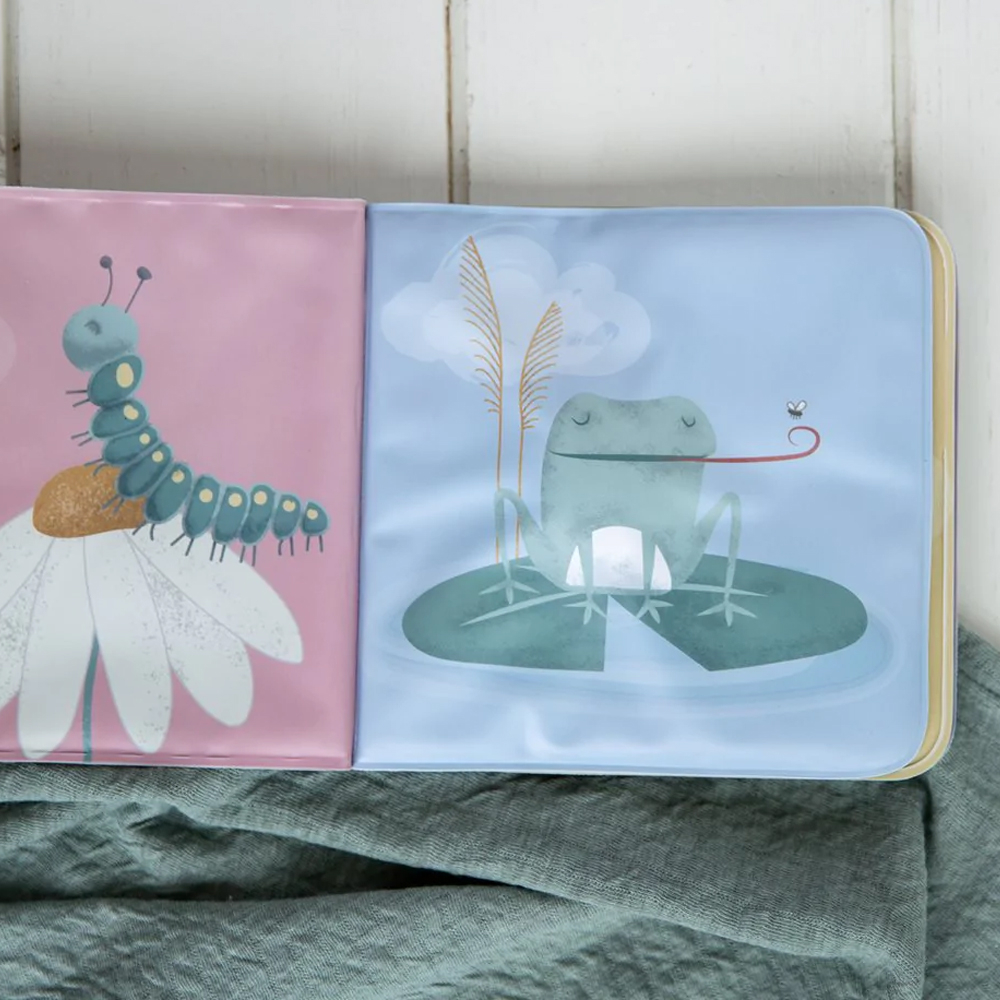 Βιβλιαράκι μπάνιου της εταιρείας Little Dutch σε πολύχρωμες αποχρώσεις. Είναι αδιάβροχο, κατασκευασμένο από EVA και εσωτερικά έχει αφρώδες υλικό που το καθιστά μαλακό. Έχει το κατάλληλο μέγεθος για τα μικρά χεράκια και είναι γεμάτο υπέροχες εικόνες με ζωάκια ενώ στην δεύτερη σελίδα, μπορεί το μικρό σας να ανακαλύψει έναν ιδιαίτερο ήχο. Μετατρέπει το μπάνιο σε διασκέδαση και βοηθά στην ανάπτυξη της φαντασίας. Φτιάξτε τις δικές σας ιστορίες με τους ήρωες του βιβλίου και δώστε του τα καλύτερα ερεθίσματα. Κατάλληλο για ηλικίες 6+ μηνών.
