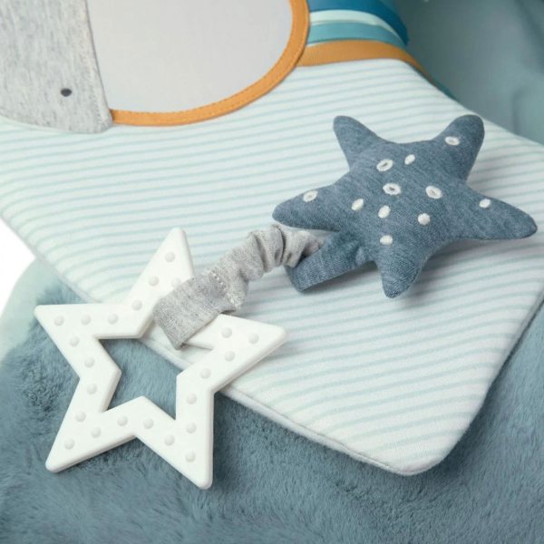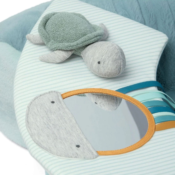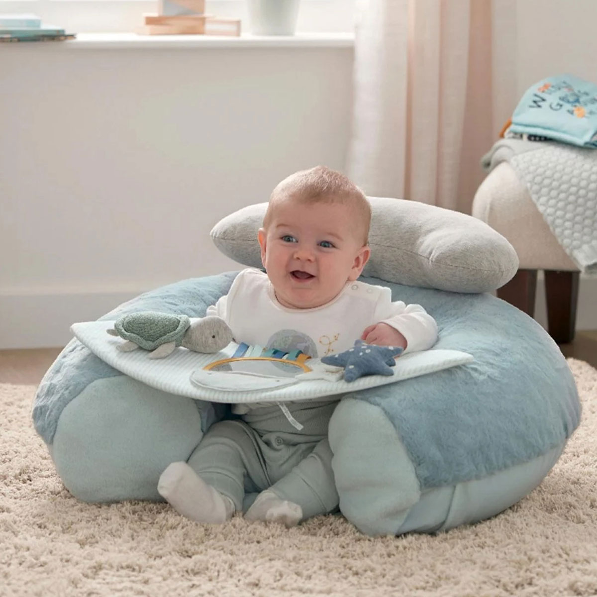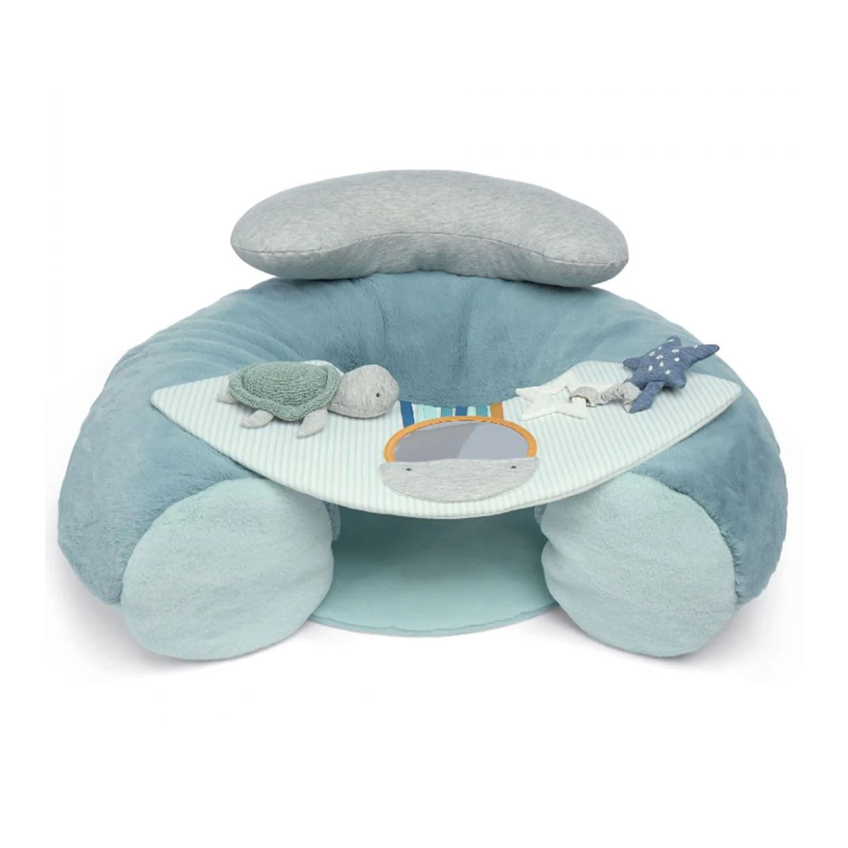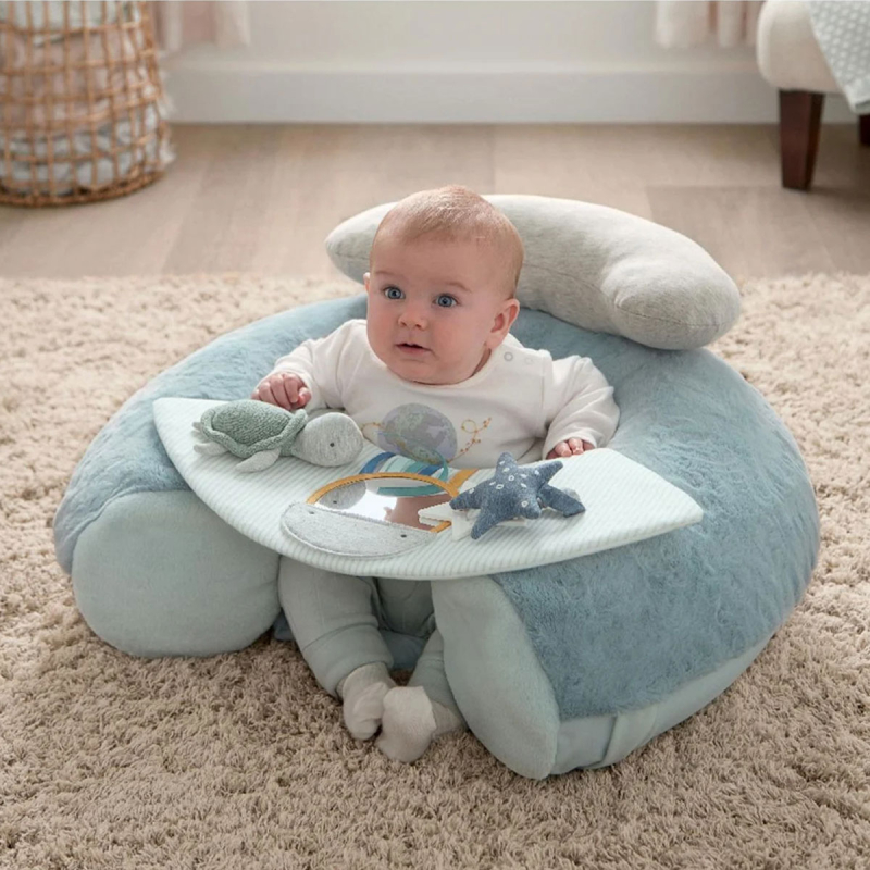 Μαλακό κάθισμα δραστηριότητας από την εταιρεία Mamas & Papas σε μπλε-γαλάζιο χρώμα. Ιδανικό καθισματάκι για όταν το μωρό σας μπορεί να καθίσει μόνο του. Το μικρό σας μπορεί να απολαμβάνει ανεξάρτητο παιχνίδι με αυτό το διαδραστικό κάθισμα. Ένα φουσκωτό κάθισμα με υπερυψωμένη πλάτη κρατάει το παιδί σας ασφαλές και προστατευμένο, καθώς επιδίδεται σε αισθητηριακή ανάπτυξη και παιχνίδι. Με ένα εύκολα αφαιρούμενο πάνελ παιχνιδιού που είναι γεμάτο διαδραστικά χαρακτηριστικά, όπως μια υφή που τσαλακώνει, μια κουδουνίστρα και έναν καθρέφτη για να μπορεί να βλέπει τον εαυτό του, καθώς και λούτρινο χελωνάκι και ένα εύχρηστο μασητικό. Σύμφωνα με το πρότυπο EN71. Ποτέ μην το χρησιμοποιείτε σε υπερυψωμένες επιφάνειες. Ποτέ μην αφήνετε το παιδί σας χωρίς επίβλεψη. Τοποθετήστε το σε επίπεδη και σταθερή επιφάνεια. Μην το χρησιμοποιείτε ως παιδικό κάθισμα ή κάθισμα αυτοκινήτου. Μην τοποθετείτε το κάθισμα κοντά σε ισχυρές πηγές θερμότητας ή σε άμεσο ηλιακό φως. Αποφύγετε την επαφή με αιχμηρά αντικείμενα που μπορεί να τρυπήσουν. Μην τοποθετείτε βαριά ή καυτά αντικείμενα στο πάνελ παιχνιδιού. Καθαρίστε το μόνο με ηλεκτρική σκούπα.