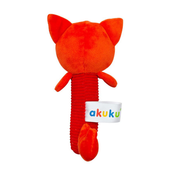 Μαλακό παιχνίδι-κουδουνίστρα σε κόκκινο χρώμα και σχέδιο αλεπού από την εταιρεία Akuku. Είναι υφασμάτινη και κατασκευασμένη από μαλακά υλικά, ιδανική για μικρά χεράκια. Στο εσωτερικό του διαθέτει μπαλίτσες που κροταλίζουν για να κινεί το ενδιαφέρον του μικρού σας. Ο γάντζος που έχει στο πάνω μέρος είναι ιδανικός για να το κρεμάτε παντού. Με αυτήν την κουδουνίστρα το παιδάκι σας θα μάθει να εκπαιδεύει τις κινητικές-οπτικές και ακουστικές ικανότητες του.