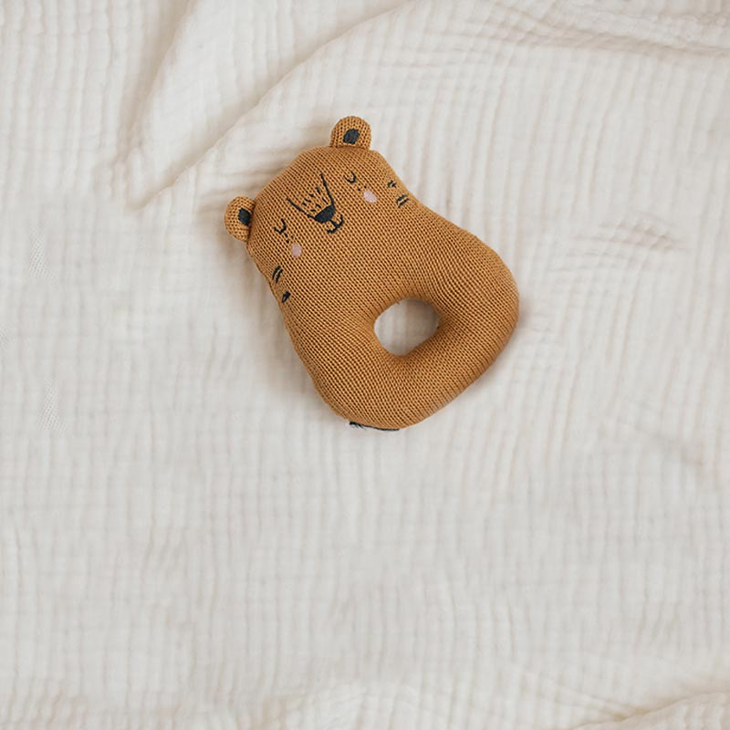 Μαλακό παιχνίδι - κουδουνίστρα τίγρης σε καφέ χρώμα από την εταιρία Minene. Είναι υφασμάτινο με πλεκτή όψη, ιδανικό για να κρατήσει συντροφιά στο μικρό σας και να το συντροφεύει παντού. Ο κύκλος στην μέση βοηθάει στο να το πιάσει το μωρό σας πιο εύκολα, ενώ ο ήχος θα κεντρίσει το ενδιαφέρον του. Συνδυάστε το με τα υπόλοιπα είδη της ίδιας σειράς. Κατάλληλο από την γέννηση.