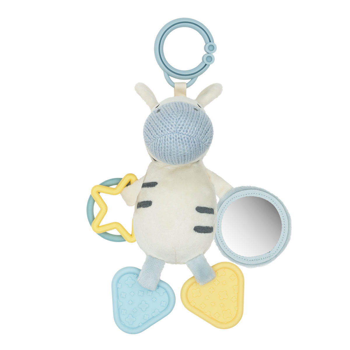 Μαλακό παιχνίδι με ήχο της εταιρείας Kikka Boo σε εκρού-γαλάζιο χρώμα με κίτρινες λεπτομέρειες. Κατασκευασμένο από ασφαλή υλικά υψηλής ποιότητας και εγκεκριμένο σύμφωνα με το πρότυπο EN 71. Μόλις το ζουλήξει το μικρό σας, θα παράγει διασκεδαστικό ήχο ενώ διαθέτει μέρη που παράγουν ήχο τσαλακωμένου χαρτιού. Έχει 2 πλαστικούς δακτύλιους και μασητικό που ανακουφίζει από τον πόνο της οδοντοφυΐας. Ενισχύει την αίσθηση της αφής, της όρασης αλλά και της ακοής και έχει το κατάλληλο μέγεθος για τα μικρά χέρια. Κατάλληλο από την γέννηση.