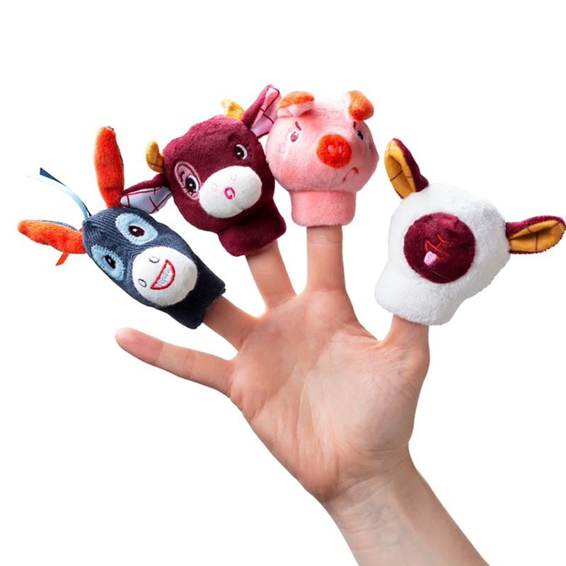 Μαλακά παιχνίδια δαχτυλόκουκλες σε πολύχρωμες αποχρώσεις και σχέδιο ζωάκια της φάρμας από την εταιρία Lilliputiens. Κατασκευασμένα εξωτερικά από 100% polyester και εσωτερικά από 100% ανακυκλωμένο polyester με πιστοποίηση GRS. Τοποθετήστε τα ζωάκια στα δάχτυλά σας και προσποιηθείτε τους ήχους που βγάζουν και δημιουργήστε την δική σας ιστορία. Κατάλληλο για ηλικίες 12+ μηνών.