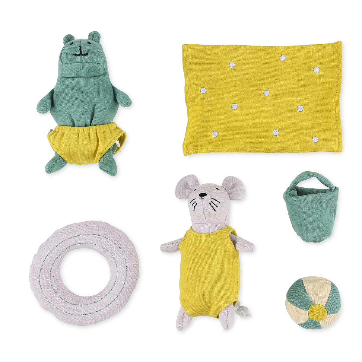 Μαλακό παιχνίδι γαντόκουκλες σε πολύχρωμες αποχρώσεις από την εταιρία Trixie. Το σπιτάκι, τα 2 ζωάκια, η πετσέτα θαλάσσης και η μπάλα θαλάσσης μαζί με την τσάντα και το σωσίβιο θα συμβάλλουν στην ένταξη του μικρού σας στο πνεύμα των ρόλων των παιδικών ηρώων των παραμυθιών, βοηθώντας το να μιμηθεί τις φωνές και τους χαρακτήρες μιας μεγάλης γκάμας προσώπων και ζώων. Αυτή η διασκεδαστική σειρά από μαριονέτες ζώων και τα χαριτωμένα αξεσουάρ κεντρίζουν το ενδιαφέρον και τη δημιουργικότητα των παιδιών. Κάθε μικρή πράξη τους ενθαρρύνει να αξιοποιήσουν τη δική τους φαντασία και να παίξουν δημιουργικά. Είναι υφασμάτινα και κατασκευασμένα εξωτερικά από 100% οργανικό βαμβάκι με γέμιση από polyester. Κατάλληλο για ηλικίες 18+ μηνών.