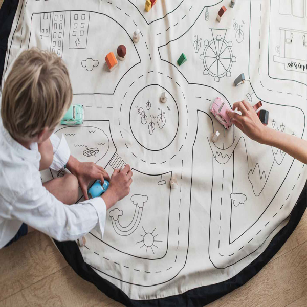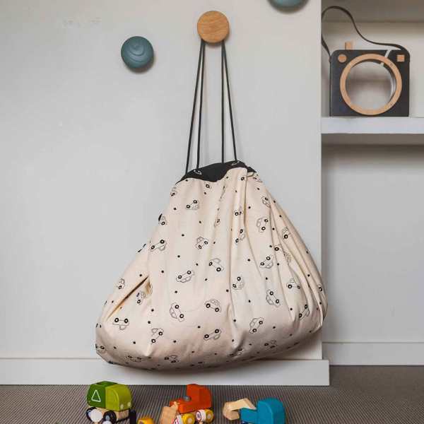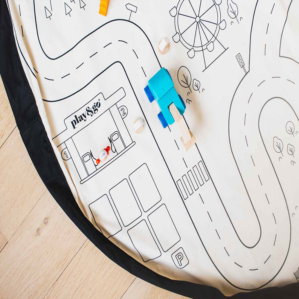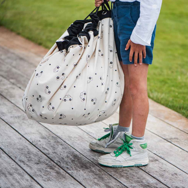 Μαλακό στρώμα παιχνιδιού από την εταιρεία Play&Go. Είναι διπλής όψης όπου η μία πλευρά μπεζ και η άλλη εκρού με αυτοκινητάκια στο σχέδιο. Είναι κατασκευασμένο εξωτερικά από 70% βαμβάκι και 30% πολυεστέρα. Στο εσωτερικό έχει γέμιση από ρητίνη πολυεστέρα. Είναι ιδιαίτερα μαλακό που το καθιστά ιδανικό για παιχνίδι. Όταν δεν χρησιμοποιείται σαν στρώμα παιχνιδιού, μπορεί να μαζευτεί και να αποτελέσει ένα βολικό σάκο παιχνιδιού αλλά ακόμα και τσάντα-σακίδιο μεταφοράς. Ο φορητός και ανθεκτικός του σχεδιασμός το καθιστούν ιδανικό για ταξίδια, εκδρομές, διακοπές και επισκέψεις σε φίλους και συγγενείς. Ο ρυθμιζόμενος και αφαιρούμενος ιμάντας ώμου εγγυάται μεγάλη άνεση. Απλά κρεμάστε το στο καρότσι και είστε έτοιμοι. Ο ιμάντας μπορεί να κρυφτεί μέσα στο ειδικό κομμάτι υφάσματος, το οποίο κουμπώνει για λόγους ασφαλείας. Οι τσάντες Play & Go κατασκευάζονται σύμφωνα με τα πρότυπα παγκόσμιας περιβαλλοντικής διαχείρισης. Όλες οι τσάντες έχουν δοκιμαστεί επίσημα και εγκριθεί από την Swiss SGS και τη γερμανική TUV.