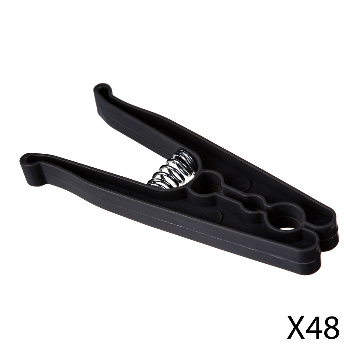 Πλαστικά μανταλάκια σε μαύρο χρώμα, κατασκευασμένα από πλαστικό υλικό. Είναι ανθεκτικά και κρατούν σταθερά τα ρούχα κατά την διάρκεια του απλώματος. Σετ 48τμχ.