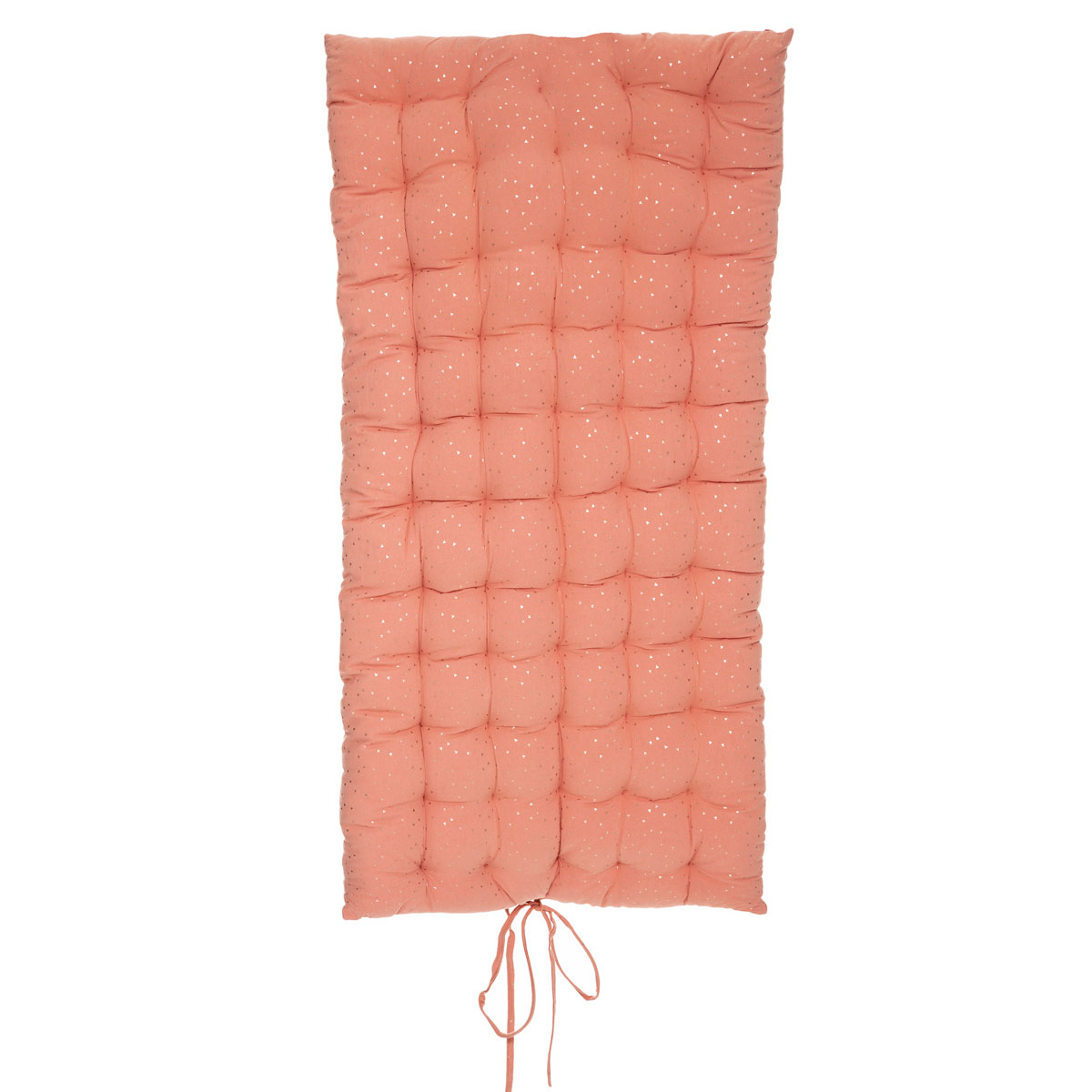 Παιδική μαξιλάρα πολλαπλών χρήσεων ιδανική για το παιδικό ή βρεφικό δωμάτιο. Το εξωτερικό ύφασμά της είναι από βαμβάκι-polyester σε κοραλί απόχρωση με μεταλλιζέ χρυσές λεπτομέρειες. Το εσωτερικό γέμισμα είναι πολυεστερική βάτα. Μπορεί να τοποθετηθεί σε παγκάκι, σε πολυθρόνα, κλπ, ή να χρησιμοποιηθεί σαν μαξιλάρα δαπέδου προσφέροντας μαλακό κάθισμα για ατελείωτες ώρες παιχνιδιού.