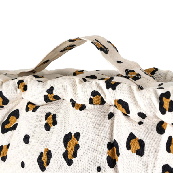 Μαξιλάρα δαπέδου για το παιδικό ή βρεφικό δωμάτιο. Το εξωτερικό ύφασμά της είναι βαμβακερό σε λευκό χρώμα με μουσταρδί και μαύρες λεπτομέρειες και animal print σχέδιο. Διαθέτει λαβή για εύκολη μεταφορά. Ιδανικό για να προσθέσει ένα μαλακό κάθισμα για τις ατελείωτες ώρες παιχνιδιού. Συνδυάστε το με τα υπόλοιπα είδη της ίδιας συλλογής για ένα ολοκληρωμένο αποτέλεσμα στο χώρο σας.