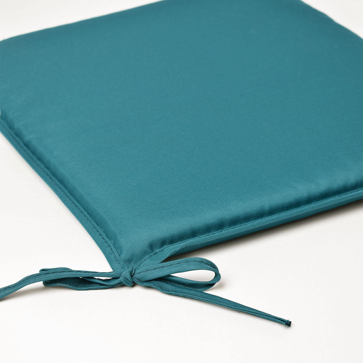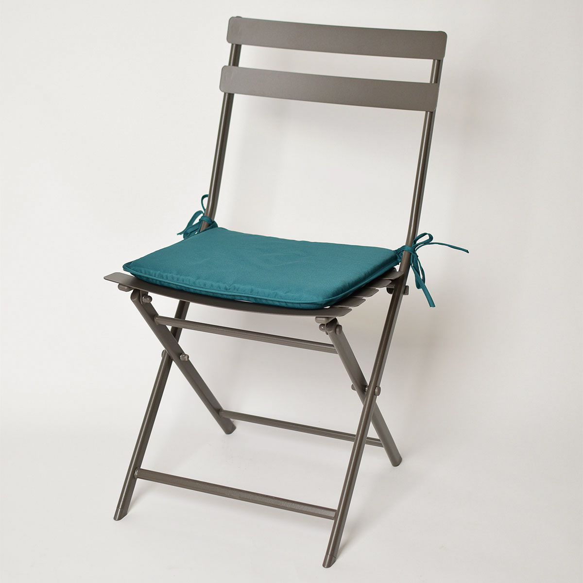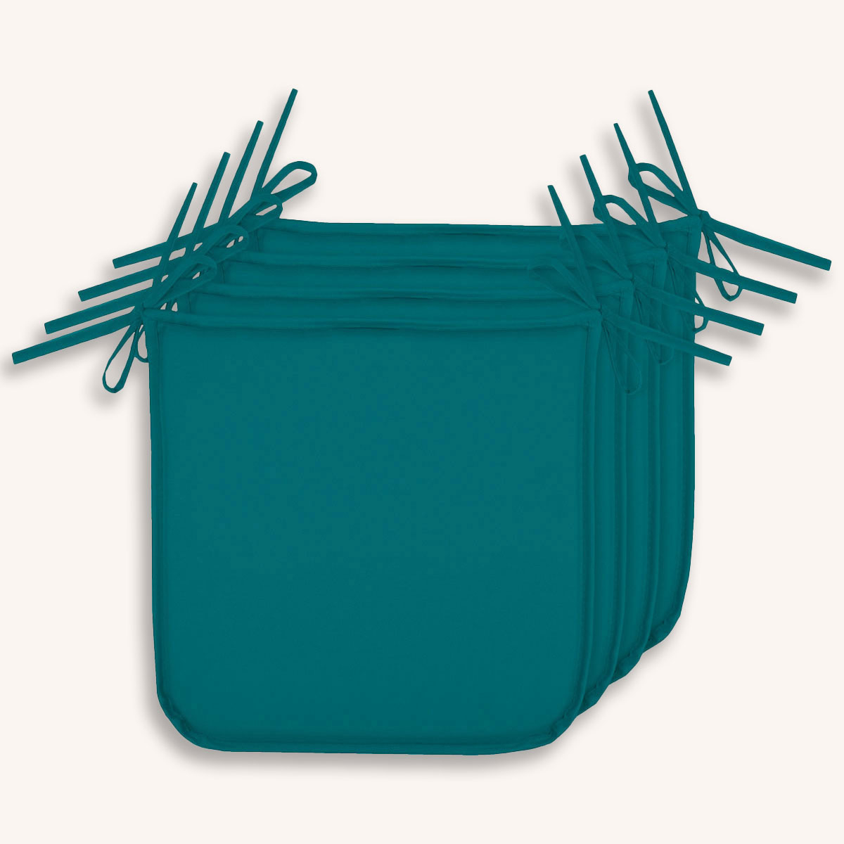 Μαξιλάρια καρέκλας σε πετρόλ απόχρωση. Το εξωτερικό ύφασμα είναι αδιάβροχο από 100% polyester ενώ το εσωτερικό γέμισμα πολυεστερική βάτα. Διαθέτουν 2 κορδελάκια για να δένει στην καρέκλα. Το σετ περιλαμβάνει 4 τεμάχια κατάλληλα για εσωτερικούς ή εξωτερικούς χώρους.