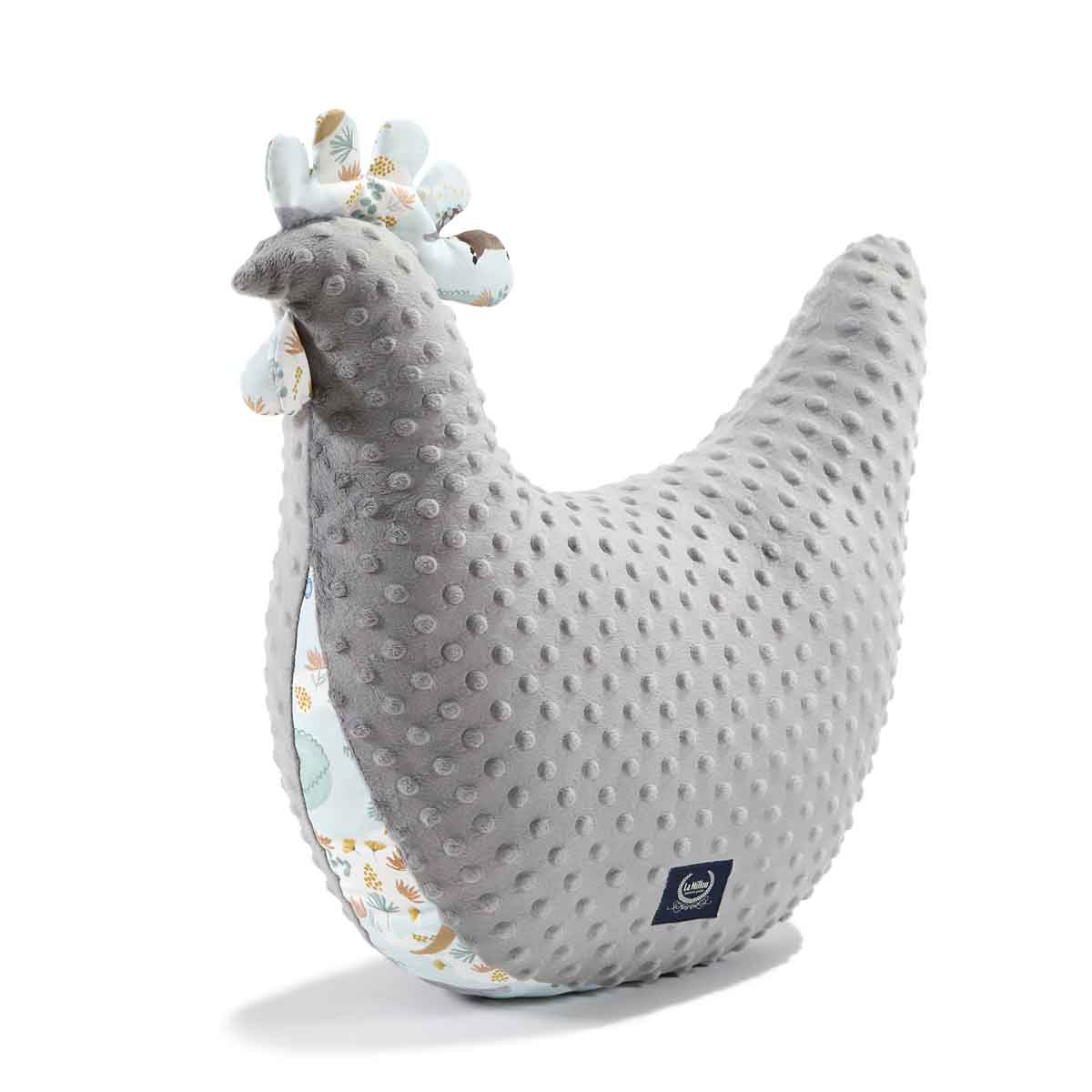 Μαξιλάρι θηλασμού της εταιρείας La Millou, με την αγαπημένη κοτούλα μικρών και μεγάλων, Kura. Μπορεί να χρησιμοποιηθεί ως μαξιλάρι ανάπαυσης κατά την διάρκεια της εγκυμοσύνης και μετά τη γέννηση του μωρού σαν μαξιλάρι θηλασμού χάρη στην ειδική καμπυλωτή σχεδίασή του. Επίσης κρατάει συντροφιά στο μωράκι σας κατά την διάρκεια του ύπνου, στα ταξίδια και το παιχνίδι, καθώς η βελουτέ υφή του το βοηθάει να χαλαρώσει. Κατασκευασμένη από γκρι Minky ύφασμα 100% πολυεστερικό. Διαθέτει υφασμάτινες λεπτομέρειες από 100% βαμβάκι με μοντέρνο σχέδιο. Όλα τα προϊόντα της εταιρείας La Millou είναι χειροποίητα.