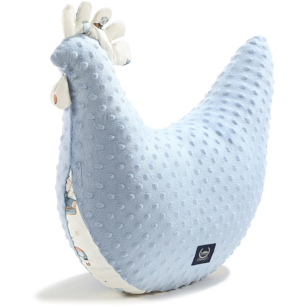 Μαξιλάρι θηλασμού της εταιρείας La Millou, με την αγαπημένη κοτούλα μικρών και μεγάλων, Kura. Μπορεί να χρησιμοποιηθεί ως μαξιλάρι ανάπαυσης κατά την διάρκεια της εγκυμοσύνης και μετά τη γέννηση του μωρού σαν μαξιλάρι θηλασμού χάρη στην ειδική καμπυλωτή σχεδίασή του. Επίσης κρατάει συντροφιά στο μωράκι σας κατά την διάρκεια του ύπνου, στα ταξίδια και το παιχνίδι, καθώς η βελουτέ υφή του το βοηθάει να χαλαρώσει. Κατασκευασμένη από Minky ύφασμα 100% πολυεστερικό σε γαλάζιο χρώμα. Διαθέτει υφασμάτινες λεπτομέρειες από 100% βαμβάκι σε εκρού χρώμα, με μοντέρνο σχέδιο. Όλα τα προϊόντα της εταιρείας La Millou είναι χειροποίητα. Συνδυάστε το με τα υπόλοιπα είδη της ίδιας σειράς για ένα ολοκληρωμένο αποτέλεσμα.