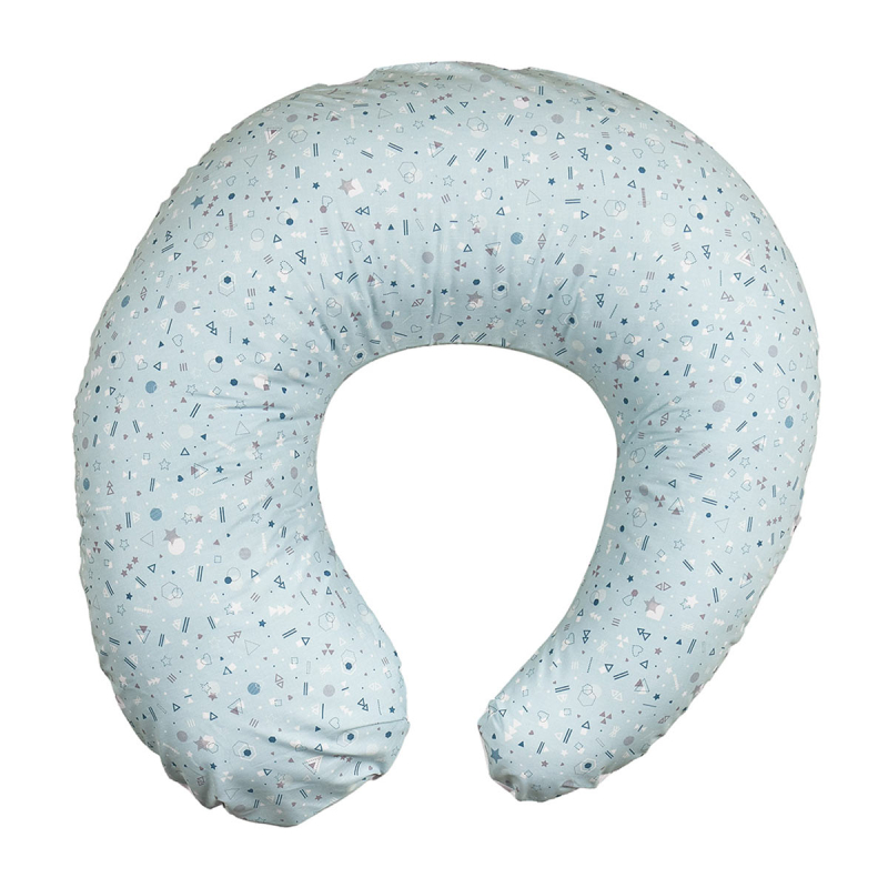 Μαξιλάρι θηλασμού από την εταιρεία Κόσμος του Μωρού που εξασφαλίζει άνεση στη μητέρα και το μωρό. Έχει εσωτερικό γέμισμα από 100% αφρώδη πολυουρεθάνη (αφρολέξ), εξωτερικό βαμβακερό ύφασμα και αφαιρούμενη βαμβακερή θήκη με φερμουάρ. Σε γαλάζιο χρώμα και μοντέρνο σχέδιο με πετρόλ-λευκές-γκρι λεπτομέρειες. Συσκευασία σακούλα PVC με φερμουάρ.