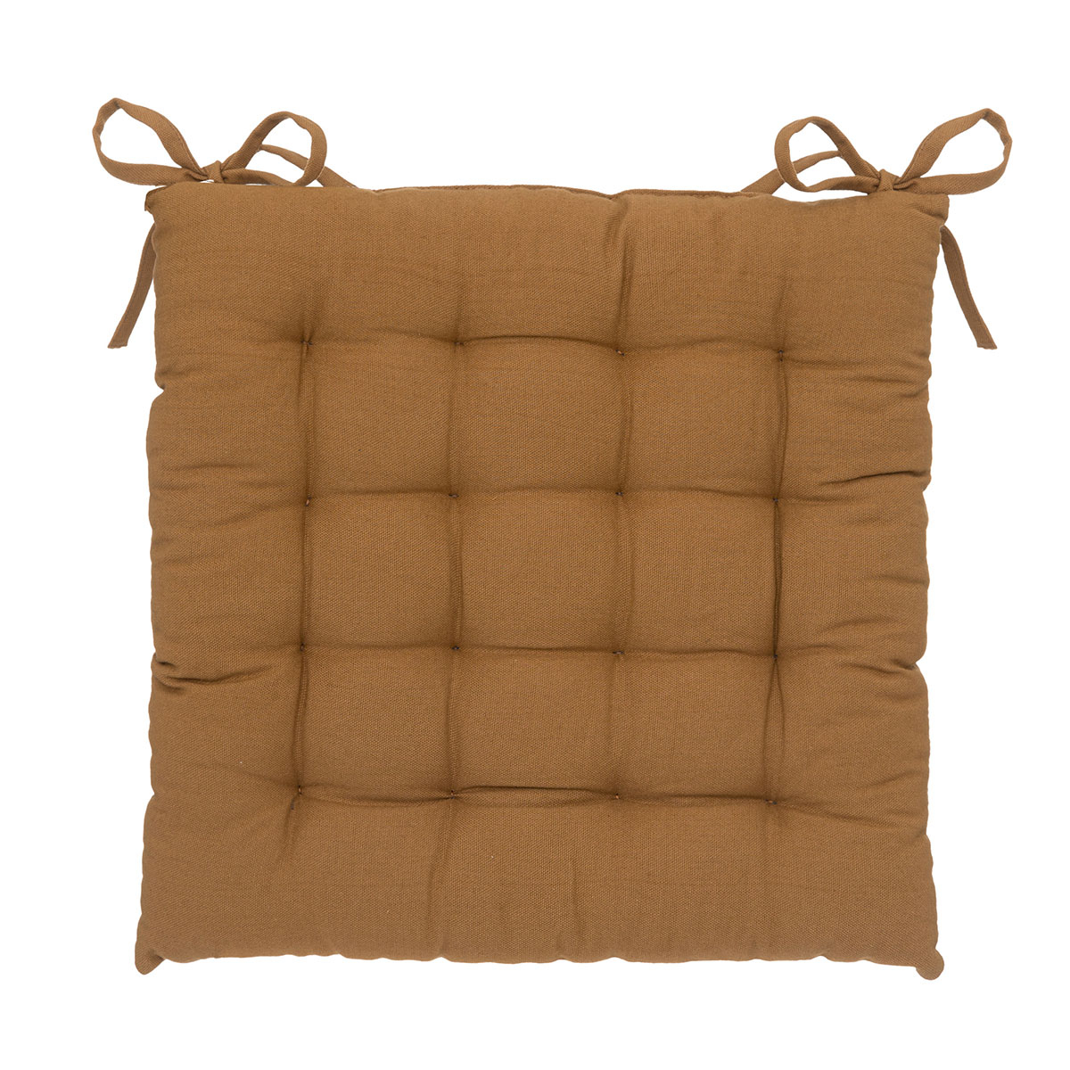 Μαξιλάρι καρέκλας μονόχρωμο στο χρώμα της ώχρας. Η σύνθεση του εξωτερικού υφάσματος αποτελείται από 100% βαμβάκι, ενώ το εσωτερικό γέμισμα είναι από ανακυκλωμένο βαμβάκι. Διαθέτει κορδονάκια στις 2 γωνίες για να δένει στην καρέκλα και διακοσμητικά φουντάκια σε όλες τις γωνίες του. Ιδανικό μαξιλάρι για να ανανεώσετε την αισθητική του χώρου σας.