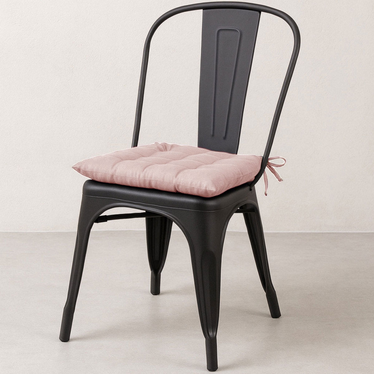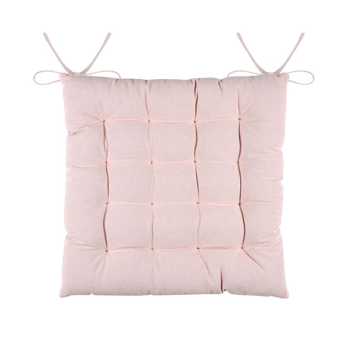 Μαξιλάρι καρέκλας μονόχρωμο σε ροζ απόχρωση. Το εξωτερικό ύφασμα είναι από 100% βαμβάκι ενώ το εσωτερικό γέμισμα πολυεστερική βάτα. Διαθέτει 2 κορδελάκια για να δένει στην καρέκλα. Συνδυάστε το με τα υπόλοιπα είδη του ίδιου σετ για να δημιουργήστε ένα ξεχωριστό στυλ.