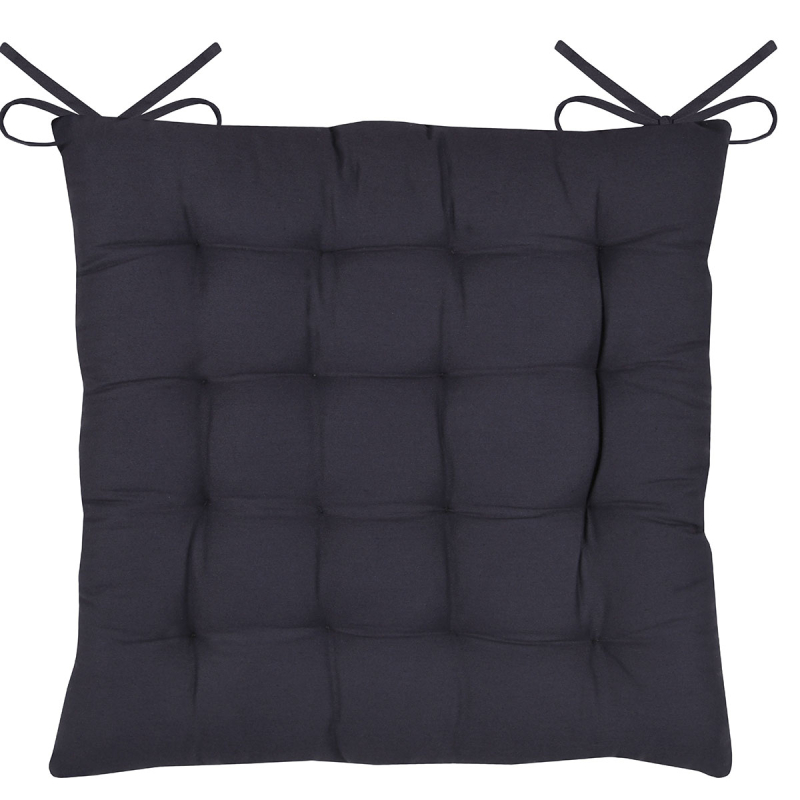 Μαξιλάρι καρέκλας σε μαύρο χρώμα. Η σύνθεση του εξωτερικού υφάσματος αποτελείται από 100% βαμβάκι, ενώ το εσωτερικό γέμισμα από πολυεστερική βάτα βάρους 200gsm. Διαθέτει κορδονάκια στις 2 γωνίες για να δένει στην καρέκλα. Προσφέρετε άνεση στις καρέκλες του τραπεζιού σας με τα μαξιλάρια καθίσματος που θα βρείτε στο Spitishop. Συνδυάστε το με τα υπόλοιπα είδη της ίδιας σειράς για μια όμορφη διακόσμηση του χώρου σας.