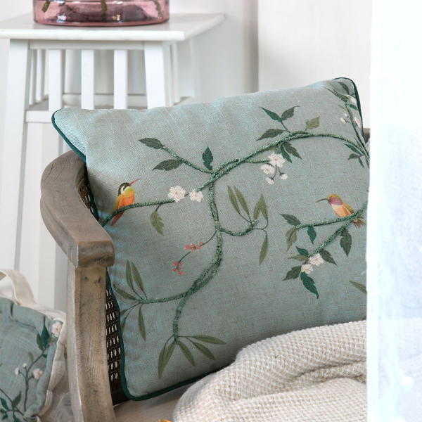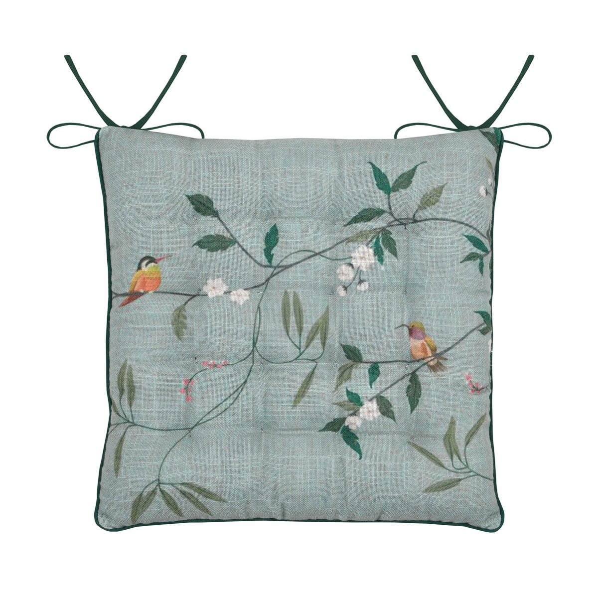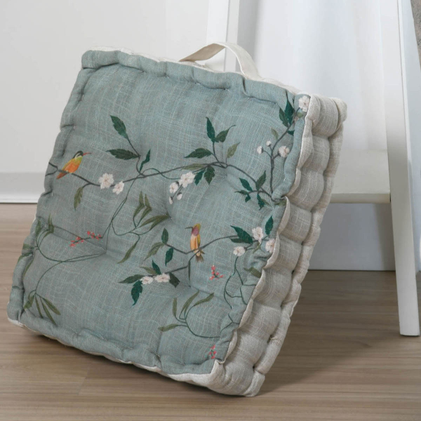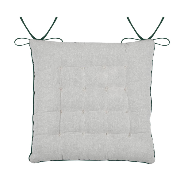 Μαξιλάρι καρέκλας διπλής όψης με την μια πλευρά να έχει βεραμάν φόντο με φλοράλ σχέδιο και πολύχρωμες λεπτομέρειες, ενώ η άλλη μεριά είναι μονόχρωμη ιβουάρ. Το εξωτερικό ύφασμα είναι από 50% βαμβάκι-46% Polyester-4% λινό ενώ το εσωτερικό γέμισμα είναι πολυεστερική βάτα. Διαθέτει κορδονάκια στις 2 γωνίες για να δένει στην καρέκλα. Συνδυάστε το με την υπόλοιπη διακόσμησή σας για να δημιουργήστε ένα ξεχωριστό αποτέλεσμα.