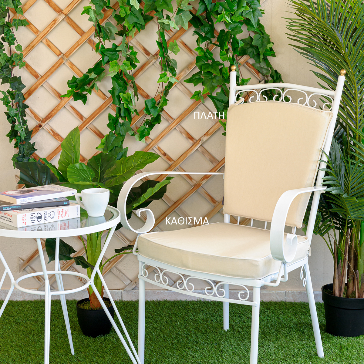Μαξιλάρι πλάτης ιδανικό για καρέκλες φερ φορζέ από την εταιρεία Be Comfy. Το κάλυμμα είναι 100% ακρυλικό ύφασμα dralon σε εκρού χρώμα, ανεξίτηλο και αδιάβροχο, κατάλληλο για χρήση σε εξωτερικό χώρο. Η γέμιση είναι από αφρολέξ ενώ διαθέτει και κορδόνια για να δένει στην καρέκλα. Πλένεται στο πλυντήριο με ελαφρύ στύψιμο. Διάσταση: ύψος 42cm, πλάτος 33-42xm, πάχος 5cm.