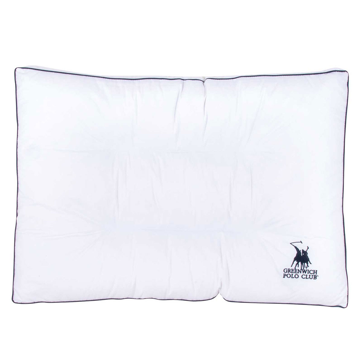 Μαξιλάρι ύπνου ανατομικό μέτριας σκληρότητας, με περιμετρικό μπλε ρέλι από τον οίκο Greenwich Polo Club. Το εξωτερικό κάλυμμα είναι 100% βαμβάκι που το καθιστά απαλό και ανθεκτικό. To εσωτερικό του μαξιλαριού είναι κατασκευασμένο από ίνες microfiber βάρους 1000gr, που το καθιστά πολύ μαλακό και ελαφρύ. Είναι υποαλλεργικό, με μεγάλη αντοχή στη χρήση και ειδικά σχεδιασμένο για να προσφέρει ποιοτικό ύπνο.