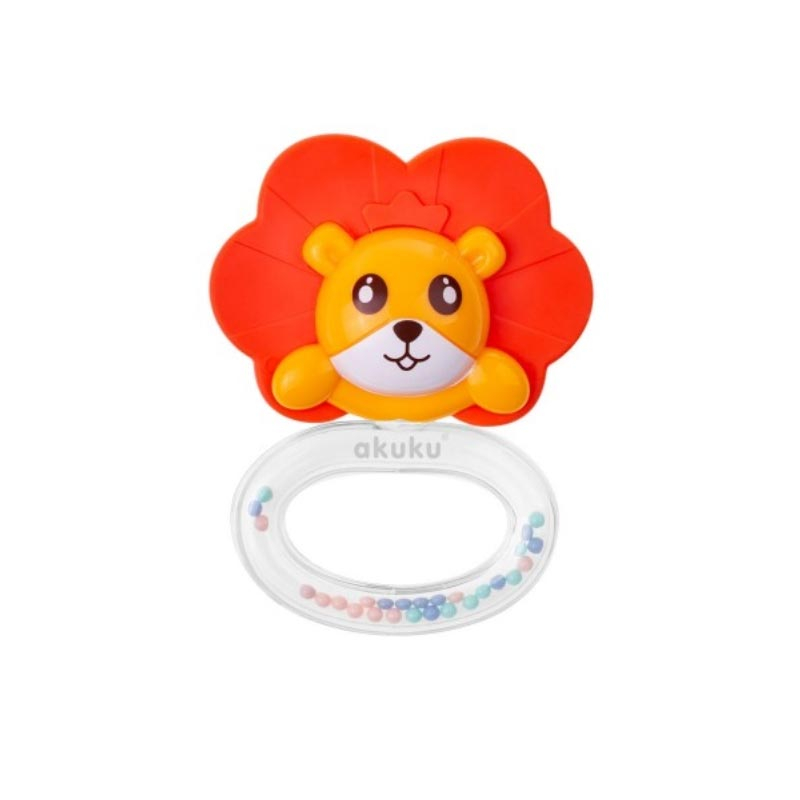 Κουδουνίστρα σε κίτρινο-πορτοκαλί χρώμα και σχέδιο λιονταράκι από την εταιρεία Αkuku. Είναι κατασκευασμένη από υλικά χωρίς BPA, Phthalates και PVC, απόλυτα ασφαλής για τα μικρά παιδάκια. Η κουδουνίστρα είναι στρογγυλεμένη χωρίς αιχμηρές γωνίες. Στο εσωτερικό της διαθέτει μπίλιες που κινούνται, ενώ τα αυτιά του ελέφαντα είναι ιδανικά για να ανακουφίσουν το μικρό σας από τα πονάκια των ούλων και των δοντιών, καθώς θα τα μασάει. Κατάλληλο για βρέφη 3+ μηνών.