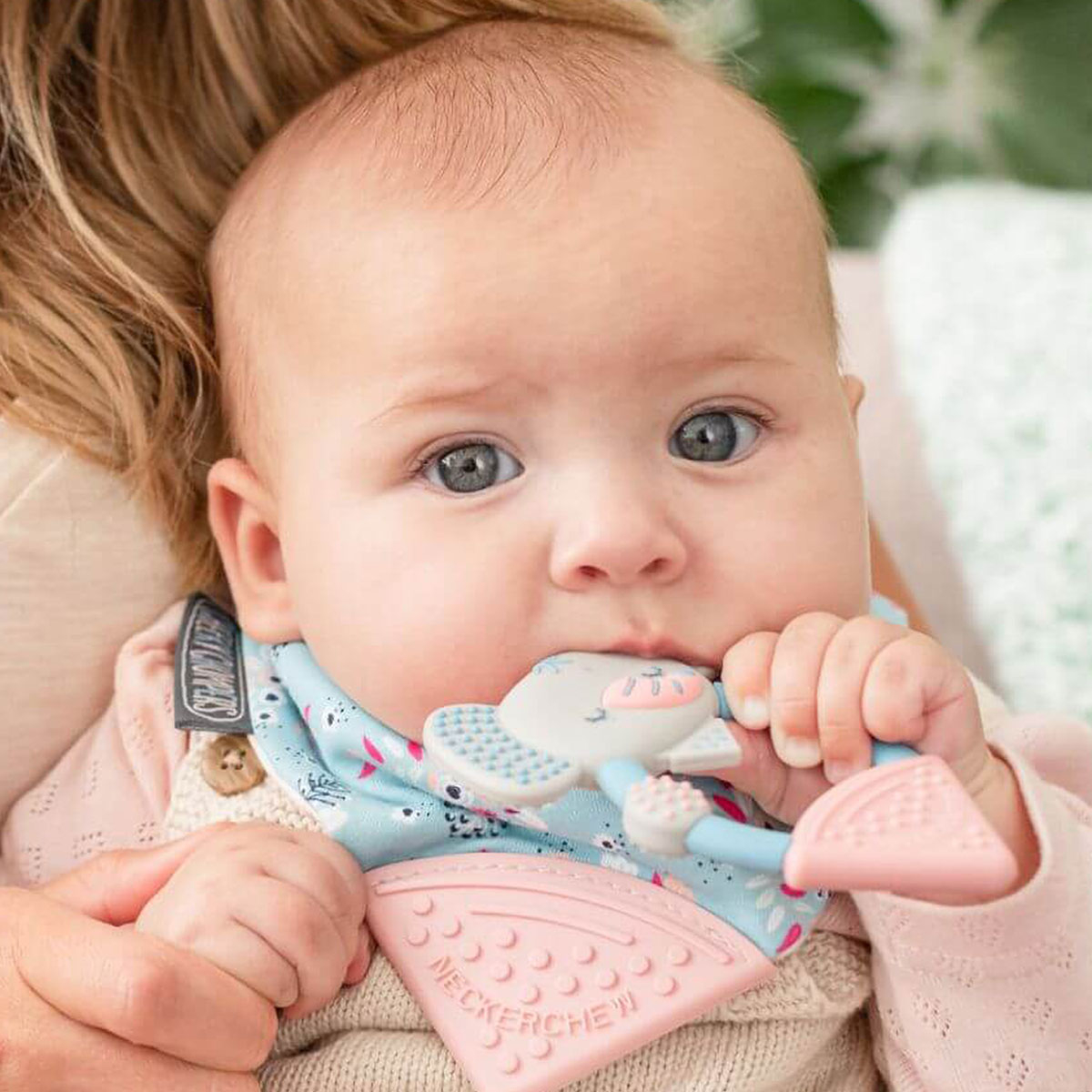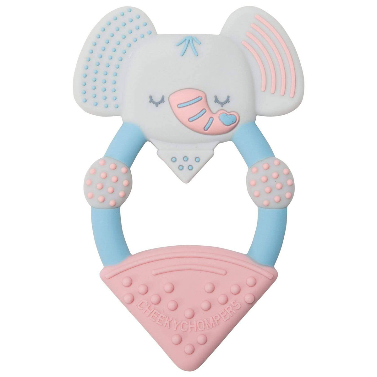 Μασητικό σε ροζ-γαλάζιο-γκρι χρώμα και σχέδιο ελεφαντάκι από την εταιρία Cheeky Chompers. Κατασκευασμένο από 100% σιλικόνη κατάλληλη για τρόφιμα (εγκεκριμένη από τον FDA) χωρίς φθαλικά άλατα ή BPA που το καθιστά ασφαλές για τα βρέφη. Είναι αρκετά μαλακό και εύκαμπτο ιδανικό για να ανακουφίσει τον πόνο των ούλων και των δοντιών. Ειδικά σχεδιασμένο για μικρά χεράκια. Διαθέτει πολλές και διαφορετικές υφές για να προσφέρει ένα ικανοποιητικό μάσημα στο μωρό σας και έναν πρακτικό τρόπο για εφαρμογή προϊόντων οδοντοφυΐας. Μπορούν να τοποθετηθούν στο ψυγείο για να είναι δροσερά. Καθαρίζονται πολύ εύκολα στο πλυντήριο πιάτων ή σε αποστειρωτή. Ελεγμένο με τα υψηλότερα πρότυπα παγκοσμίως.