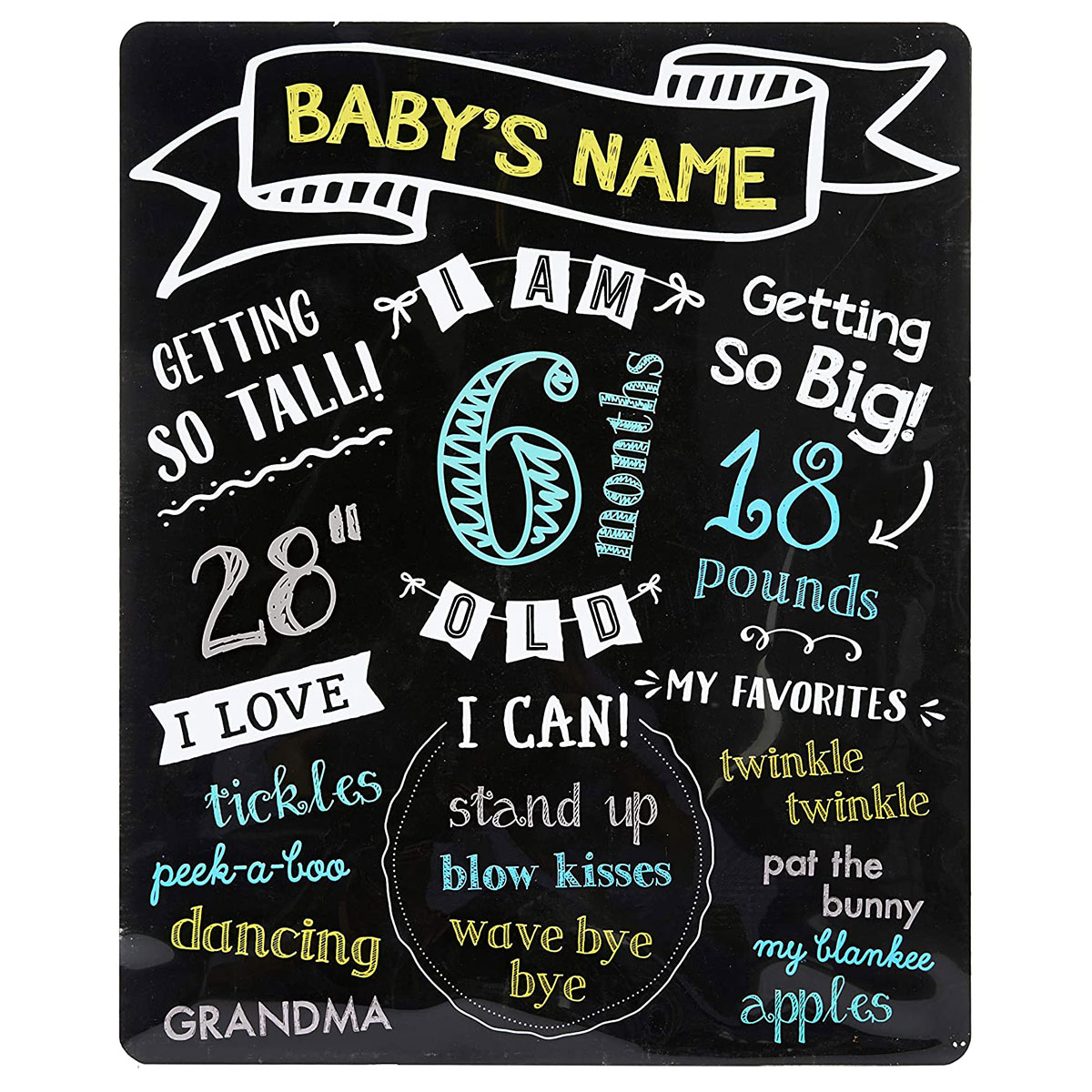 Πίνακας φωτογράφησης της εταιρείας Pearhead. Είναι ξύλινος, σε μαύρο χρώμα με λευκές λεπτομέρειες. Έχει εκτυπωμένα σημεία για να καταγράψετε το όνομα, την ηλικία, το ύψος, το βάρος, τις κινητικές ικανότητες και τα αγαπημένα του μωρού με τις πολύχρωμες κιμωλίες. Αφού συμπληρώσετε τον πίνακα, είστε έτοιμοι για να βγάλετε φωτογραφία το μωρό δίπλα του και να δημιουργήσετε μια μοναδική προσθήκη στο άλμπουμ του.