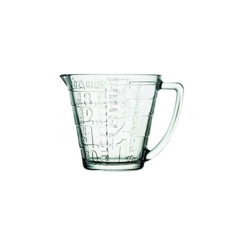 Γυάλινη μεζούρα-δοσομετρητής από την εταιρεία Pasabahce By Espiel. Έχει ανάγλυφες τις δόσεις για να μετράτε ml, oz και κούπες. Χρησιμοποιήστε την για να φτιάξετε γλυκά ή ότι άλλο απαιτεί ακριβείς ποσότητες κατά την παρασκευή. Χωρητικότητας 1165CC.