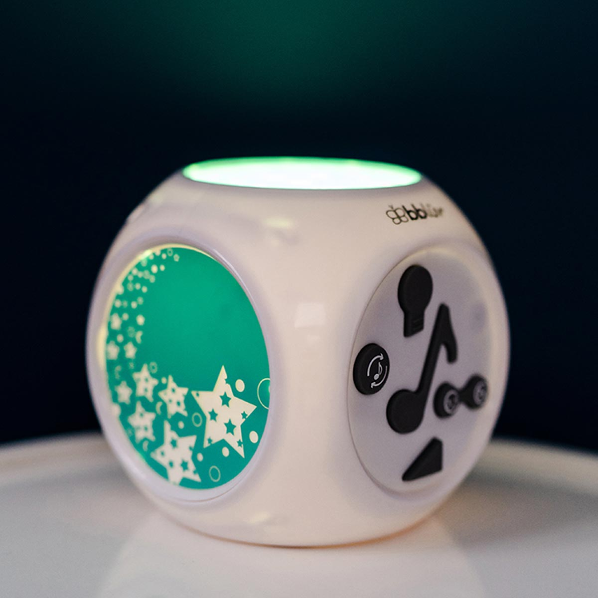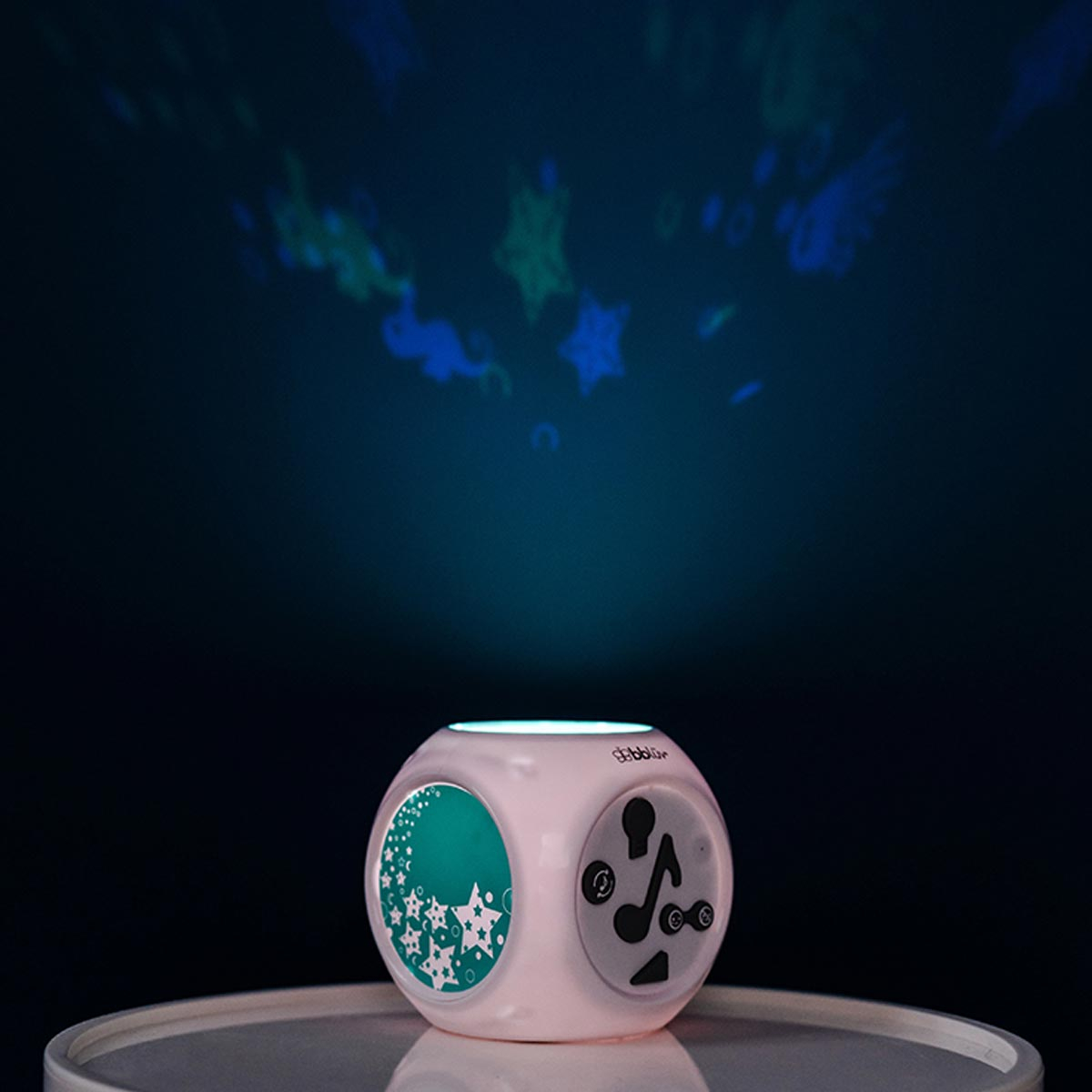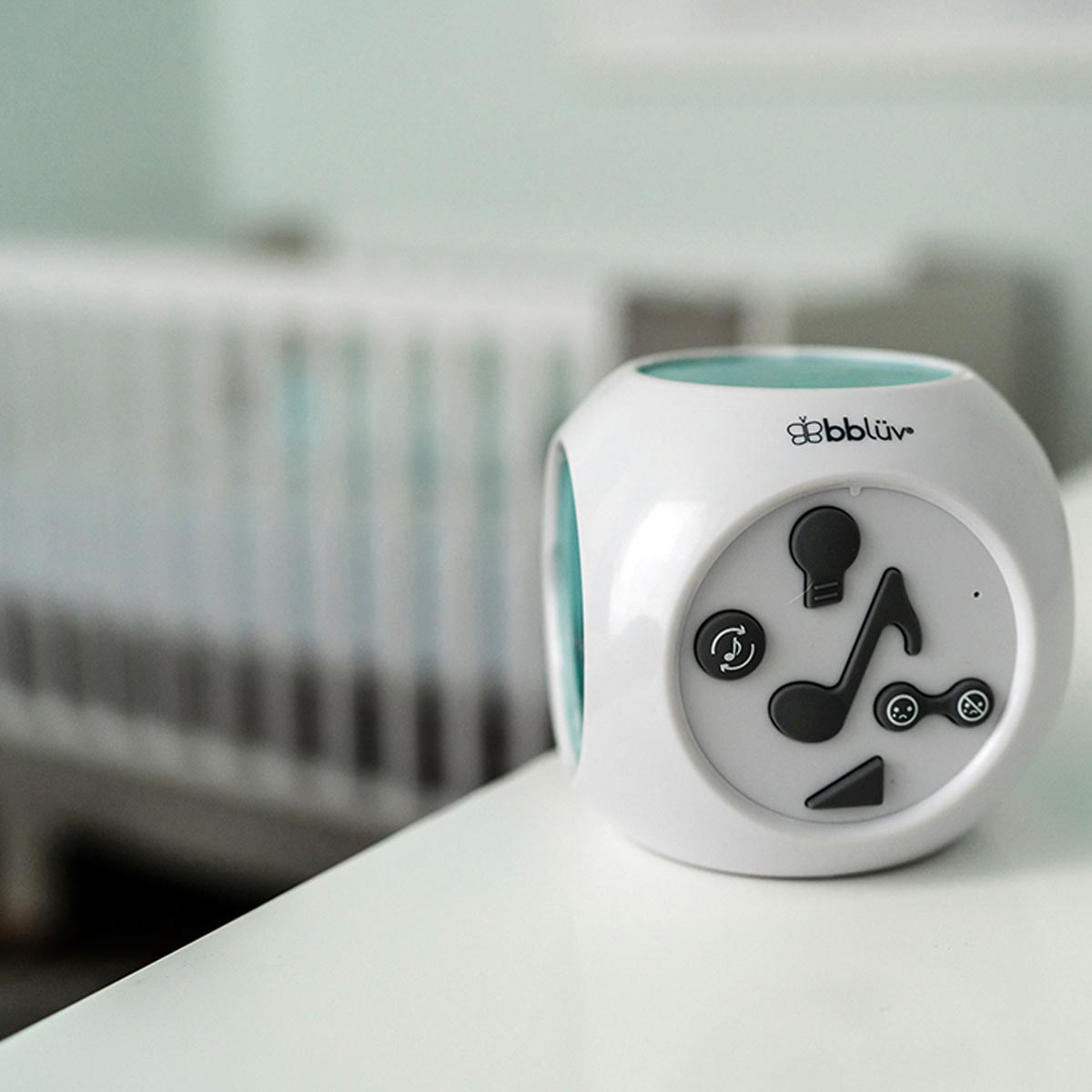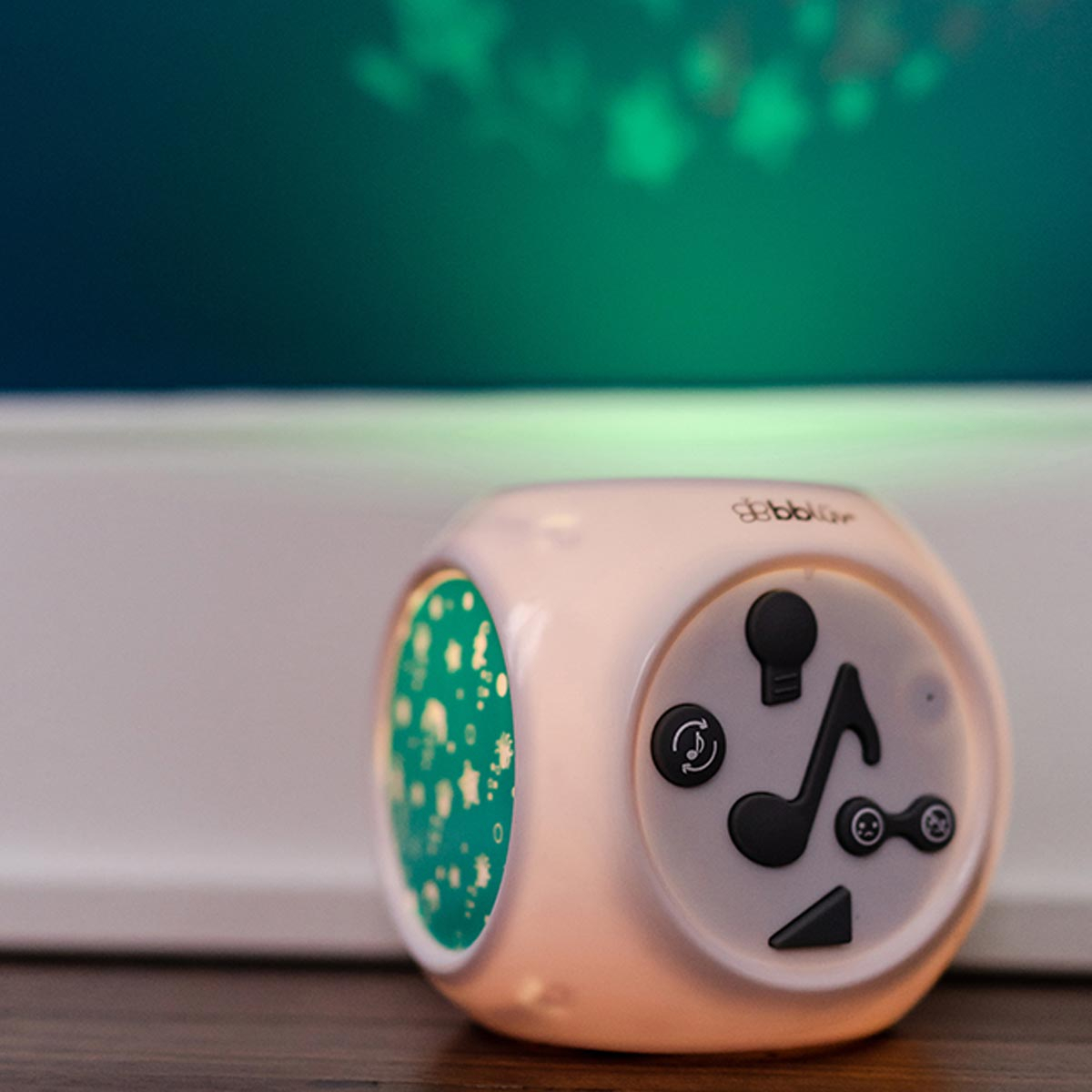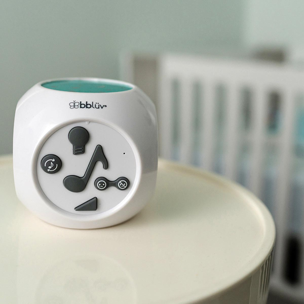 Μουσικός προβολέας σε λευκό χρώμα και σχήμα κύβου από την εταιρία Bbluv. Αυτός ο πολυλειτουργικός προτζέκτορας είναι ιδανικός για την χαλάρωση του μικρού σας καθώς συνδυάζει ήχο και εικόνα μαζί. Διαθέτει διάφορες λειτουργίες και 15 διαφορετικούς ήχους. Τα 10 νανουρίσματα και οι 5 φυσικοί ήχοι (πουλιά, χτύποι καρδιάς, τρεχούμενο νερό, δάσος, θάλασσα) θα ηρεμήσουν το μικρό σας χαλαρώνοντας και θα το νανουρίσουν παράλληλα. Περιλαμβάνει επιπλέον 3 εναλλακτικά θέματα για προβολή στο ταβάνι (ήρεμη θάλασσα, νύχτα με αστέρια και δάσος) ενώ διαθέτει και ανιχνευτή φωνής, δηλαδή μόλις το μωρό κλάψει, ο προτζέκτορας ή/και η μουσική ενεργοποιούνται, για να το νανουρίσουν και να κοιμηθεί. Διαθέτει αυτόματο κλείσιμο μετά από 60 λεπτά. Μπορεί να χρησιμοποιηθεί USB καλώδιο για το ρεύμα (δεν περιλαμβάνεται) ή 3 μπαταρίες ΑΑΑ (δεν περιλαμβάνονται)