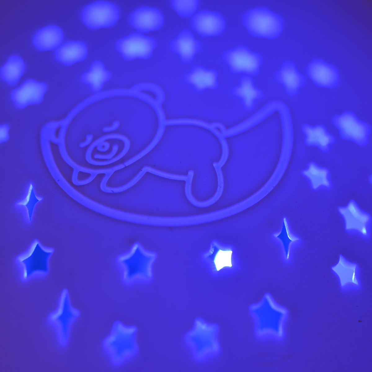 Μουσικός προβολέας της εταιρείας Moni σε γαλάζιο χρώμα και σχήμα ζωάκι. Βοηθά το μωρό να αισθάνεται ασφαλές κατά τη διάρκεια της νύχτας και δημιουργεί μια φιλική και χαλαρωτική ατμόσφαιρα στο δωμάτιο. Κατασκευασμένο από υψηλής ποιότητας και ασφαλή για τα παιδιά υλικά, απαλλαγμένα από βλαβερές ουσίες. Οι απαλές μελωδίες και οι φωτεινές παραστάσεις, βοηθούν το μωρό να ηρεμεί και να έχει έναν γλυκό ύπνο. Λειτουργεί με 3 μπαταρίες ΑΑ (δεν περιλαμβάνονται). Ιδανικό για να το έχετε στο βρεφικό δωμάτιο αλλά και στα ταξίδια με το μωρό σας. Κατάλληλο για βρέφη 3+ μηνών.