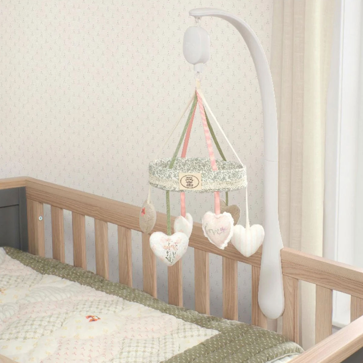 Μουσικό mobile για την κούνια από την εταιρεία Mamas & Papas με κρεμαστές καρδούλες. Η χαλαρωτική μουσική, τα διακοσμητικά στοιχεία και οι κεντημένες λεπτομέρειες ηρεμούν το μωρό και το βοηθούν να κοιμηθεί. Κατάλληλο από τη γέννηση. Σύμφωνα με το πρότυπο EN71.