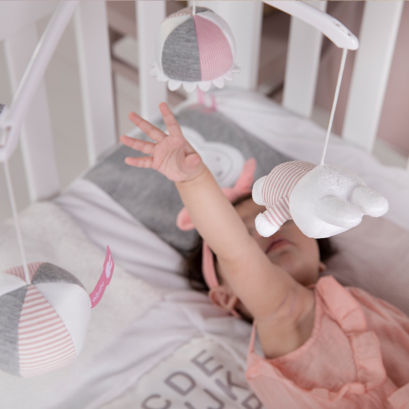 Μουσικό μόμπιλε της εταιρείας Miffy που θα βοηθήσει το παιδί να κοιμηθεί, ενώ βοηθά στην ανάπτυξη της ακοής, της όρασης και του συγχρονισμού χεριών-ματιών. Στηρίζεται εύκολα στην κούνια ή στο παρκοκρέβατο και αναπαράγει το νανούρισμα Brahms. Έχει 4 ζωάκια από ύφασμα 50% βαμβάκι-50% polyester, ενώ η γέμισή τους είναι από 100% polyester. Είναι κουρδιστό κι έτσι δεν χρειάζεται μπαταρίες. Ιδανικό για κοριτσάκια. Κατάλληλο για ηλικίες 0+ μηνών.