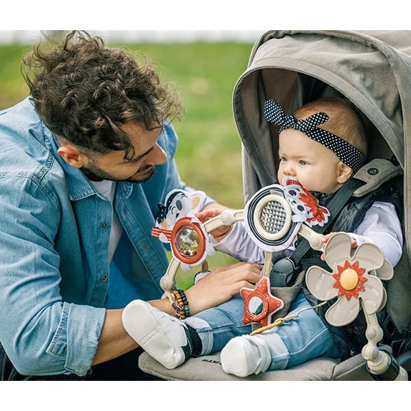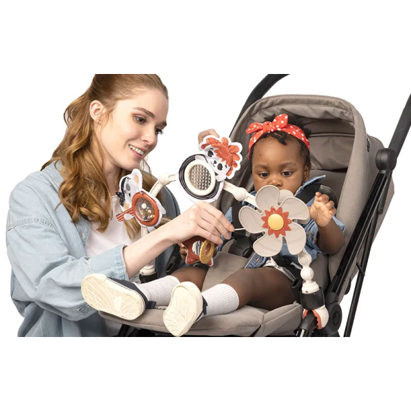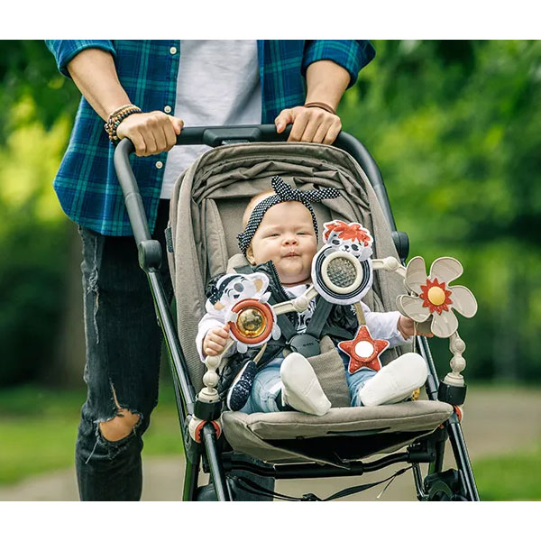 Μπάρα παιχνιδιών της εταιρείας Tiny Love με μοντέρνο σχέδιο. Είναι κατασκευασμένο από πλαστικό υλικό. Ένα έξυπνο παιχνίδι για καρότσι με 8 ενδιαφέρουσες δραστηριότητες που προάγουν βασικές δεξιότητες. Το ευέλικτο σχέδιο του προσαρμόζεται στην ηλικία και την ανάπτυξη του μωρού. Είναι σχεδιασμένο για δύο στάδια ανάπτυξης την αισθητηριακή εξερεύνηση (0+ μηνών) και τη μάθηση αιτίου-αποτελέσματος (5+ μηνών). Διεγείρει τις αισθήσεις της ακοής, της όρασης και της αφής με αποτέλεσμα να συμβάλει στην γνωστική του ανάπτυξη. Η προπέλα ενεργοποιείται από το μωρό. Ο καθρέφτης αστεριού, ο κρίκος με υφή για εύκολη λαβή, η μπάλα που κουδουνίζει και το μικρόφωνο κουδουνίστρα. Ο θόλος είναι ρυθμιζόμενος όπως επίσης και τα κλιπ ώστε να είναι συμβατό με τα περισσότερα καρότσια. Κατάλληλο από την πρώτη μέρα γέννησης.