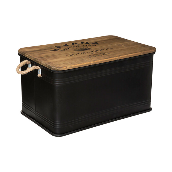 Μπαούλα αποθήκευσης για να είναι πάντα τακτοποιημένος ο χώρος σας και τα αγαπημένα σας αντικείμενα. Είναι μεταλλικά σε μαύρη απόχρωση με ξύλινα καπάκια. Διαθέτουν λαβές κρατήματος από σχοινιά στις 2 πλευρές για εύκολη μεταφορά. Μπορούν να στοιβαχθούν ή να τοποθετηθούν ξεχωριστά σε διαφορετικά σημεία.