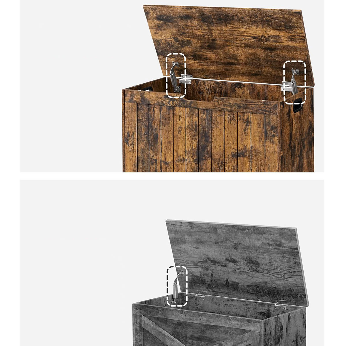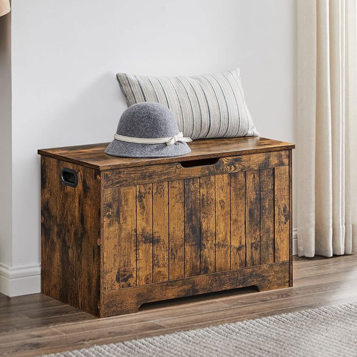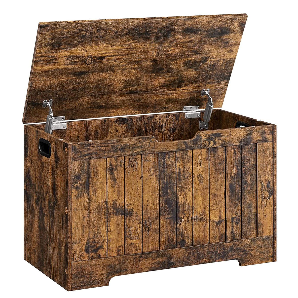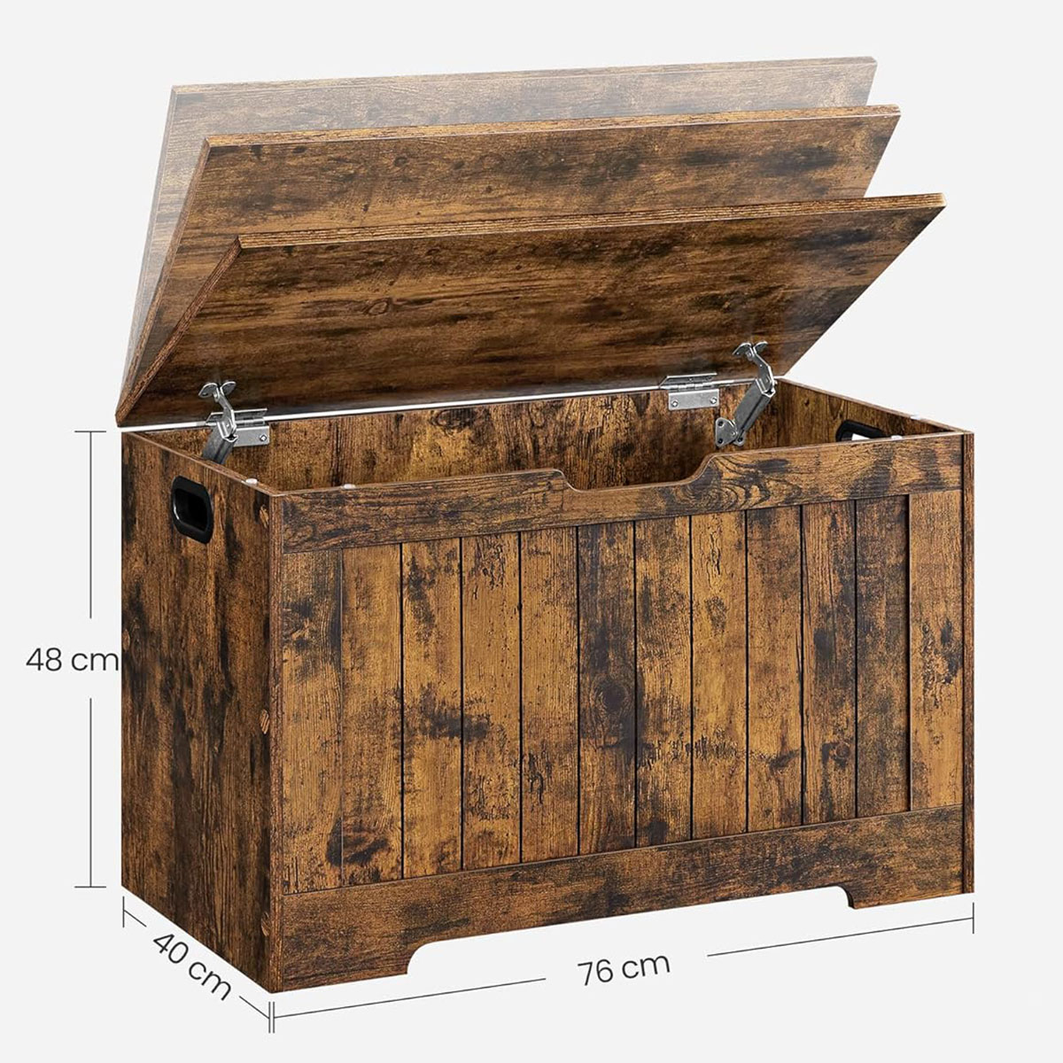 Μπαούλο αποθήκευσης μεγάλο με μοντέρνο σχεδιασμό από την εταιρεία Vasagle. Είναι κατασκευασμένο από μοριοσανίδα σε καφέ ρουστίκ χρώμα. Διαθέτει λαβές για εύκολη μεταφορά και έχει μέγιστο βάρος αντοχής έως 136kg. Έχει εγκοπή ώστε να ανοίγετε το καπάκι με ευκολία. Το καπάκι μπορεί να μείνει ανοιχτό σε γωνία έως και 60 μοίρες και διαθέτει μεντεσέδες ασφαλείας για να κλείνει αθόρυβα όταν φτάνει στα 5εκ. απόσταση από το κλείσιμο. Μπορεί να χρησιμοποιηθεί σαν αποθηκευτικός χώρος ή και σαν κάθισμα για να βάζετε τα παπούτσια σας. Παρέχει άφθονο αποθηκευτικό χώρο για να φυλάσσετε κουβέρτες, μαξιλάρια, ρούχα, βιβλία και να δημιουργείτε τάξη όπου κι αν χρειάζεστε. Ιδανικό για όλους τους χώρους του σπιτιού ακόμα και για το βρεφικό-παιδικό δωμάτιο. *Το προϊόν έρχεται αμοντάριστο.*